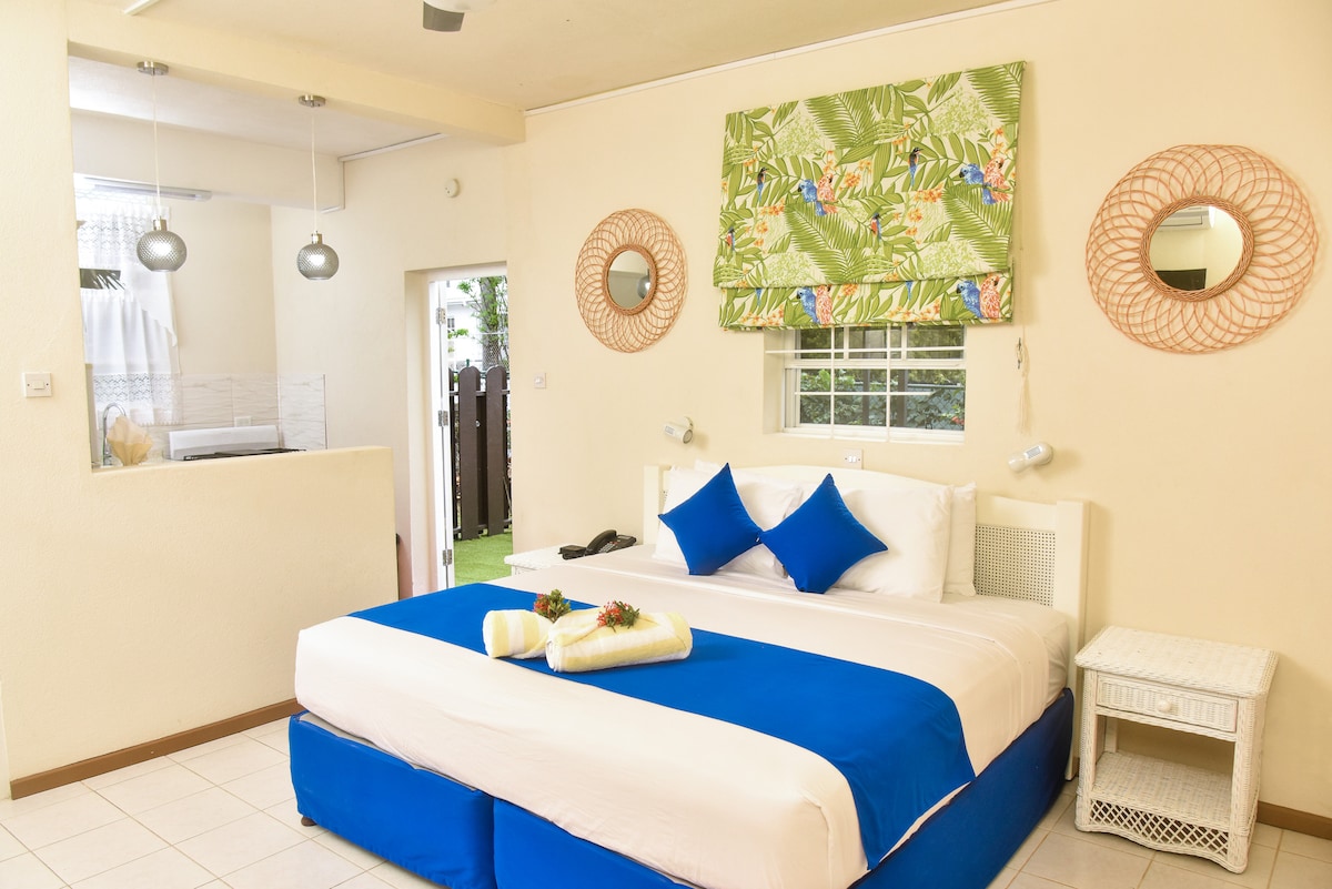Cada uno de nuestros 23 estudios Superior viene con un balcón privado con una vista excepcional. Estas unidades de planta abierta son acogedoras y te permiten disfrutar de la belleza del mar Caribe sin siquiera salir de tu cama. Estas habitaciones son perfectas para parejas o solteros, ya que están equipadas con una gran cama doble o dos camas individuales. Las características adicionales incluyen: caja fuerte en la habitación, baño con ducha a ras de suelo y artículos de tocador de cortesía.