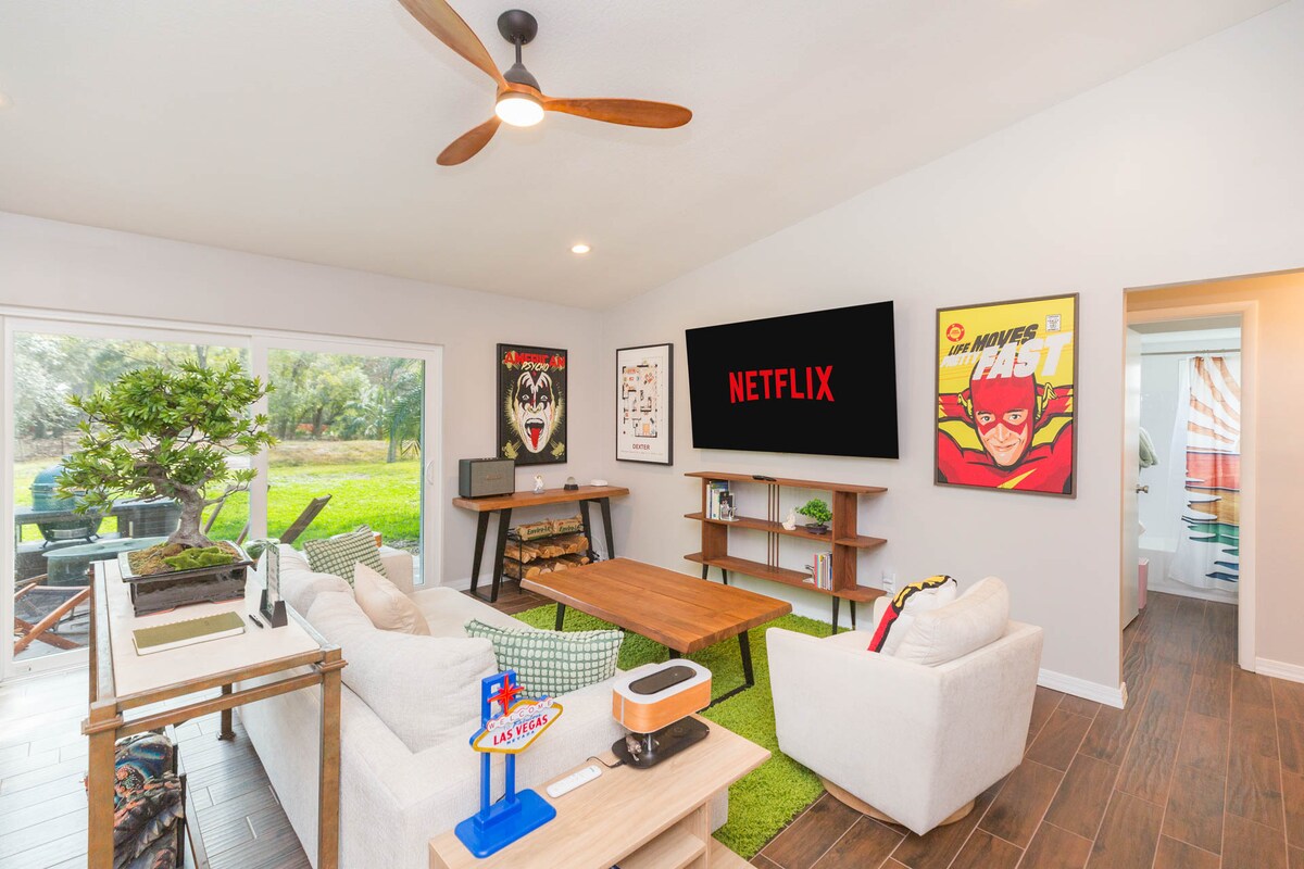 Escápate al tranquilo campo de Plant City en esta casa de campo. Perfecta para una escapada relajante, ofrece comodidad y conveniencia, ideal para quienes trabajan de forma remota, con oficina y wifi de alta velocidad. Relájate en la sala de juegos y el área de descanso. Tendrás la oportunidad de ver animales de granja amigables justo afuera de tu puerta. Ya sea para trabajar, jugar o descansar, nuestra casa ofrece una estadía memorable en el corazón del campo.