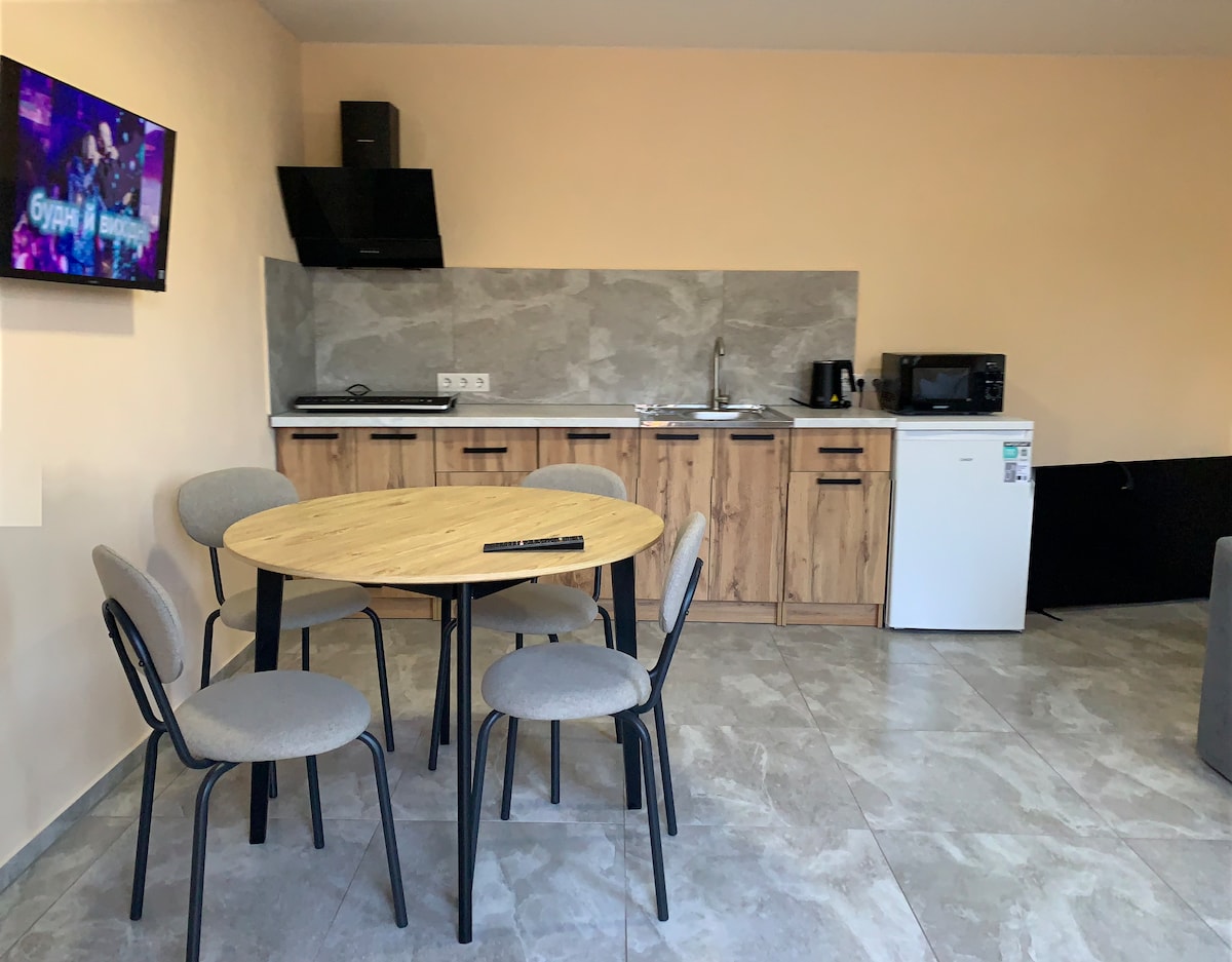 Relájate con toda la familia en este acogedor lugar en una parte respetuosa con el medio ambiente de Ucrania. Este elegante alojamiento es perfecto para grupos de 8 personas