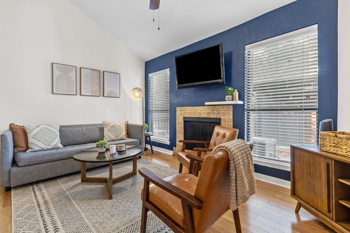 Escápate a un tranquilo bolsillo del centro de Austin con este espacioso y recientemente renovado apartamento en un edificio tranquilo y de baja altura. Los aspectos más destacados incluyen *un lugar de estacionamiento cerrado/reservado gratuito*, *dos bicicletas gratuitas*, electrodomésticos de alta gama, un patio privado al aire libre y un cómodo dormitorio con una cama tamaño king. Un sofá cama tamaño queen permite que este apartamento duerma cuatro. El baño es accesible desde el dormitorio y la sala de estar, manteniendo el dormitorio privado. Dos televisores inteligentes grandes están listos para transmitir. ¡Quédate, relájate, disfruta!