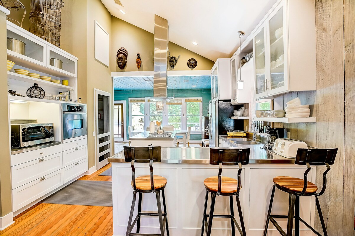 Modern home in charming East Austin neighborhood that’s close to restaurants galore, Rainey St, 6th St, downtown, the east side, SoCo and Whole Foods. 2 blocks from Lady Bird Lake. VERY central/walk able, close to everything you'd possibly want to explore here! Stand-outs : art-filled interiors with brand-new furniture, brooklinen sheets and TVs in each bedroom. Enjoy a private outdoor patio, share meals or clink glasses in the open kitchen. This is the perfect home base for your Austin visit.