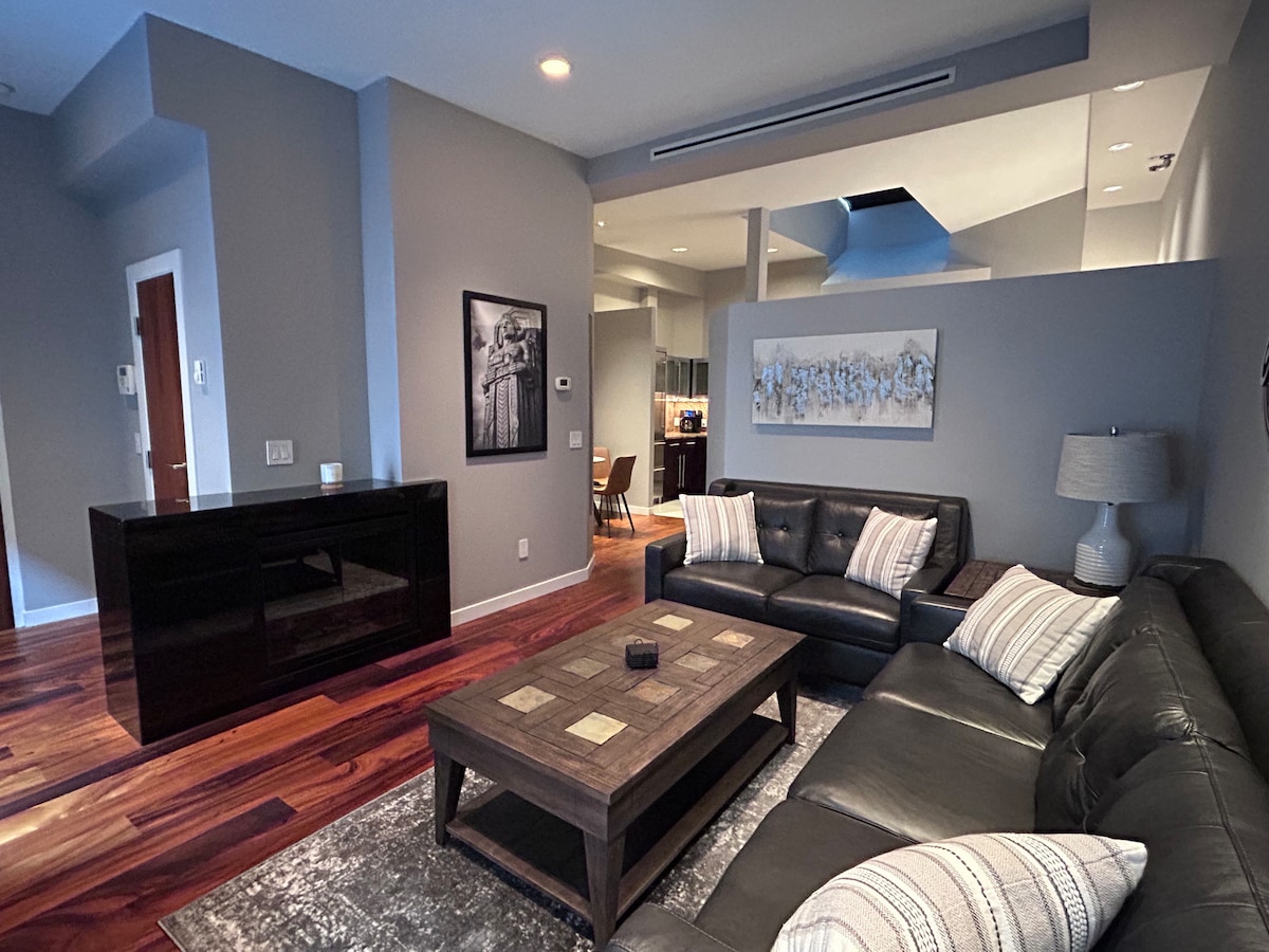 Experimenta lo mejor de la vida en la ciudad en nuestro elegante apartamento de 1 dormitorio en el centro de Cleveland. Este espacio moderno y orgánico cuenta con techos de 14 pies, suelos de madera y grandes ventanales, creando un ambiente luminoso y espacioso. Nuestro apartamento incluye 1 cama tamaño queen y 1 sofá. Situado en el corazón del centro de la ciudad, estás a pocos pasos de los mejores restaurantes, tiendas y lugares de entretenimiento. Ideal tanto para viajes de negocios como de placer, nuestro apartamento ofrece el refugio urbano perfecto. ¡A POCA DISTANCIA DE TODOS LOS ESTADIOS DE CLEVELAND!