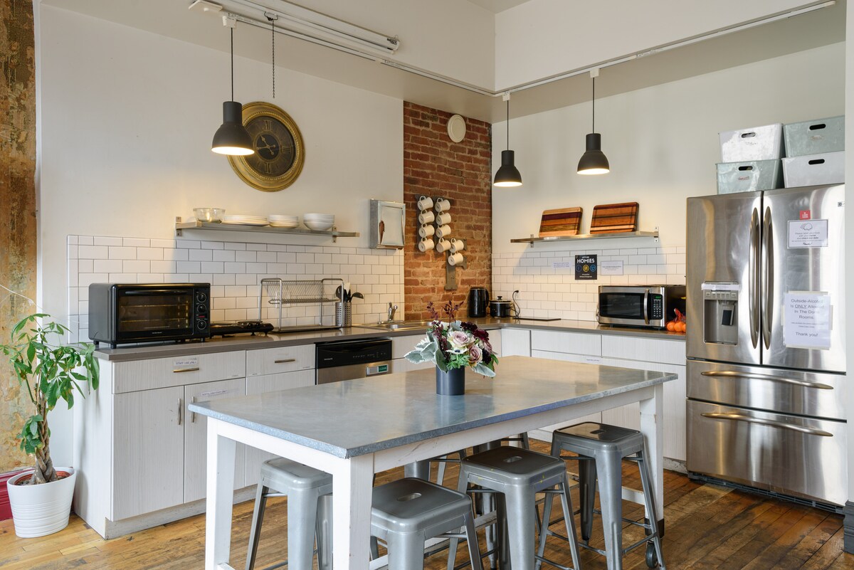 ¡Nuestras habitaciones compartidas están llenas de decoración y experiencias únicas! Cada habitación tiene colchones de felpa y sábanas, acceso con tarjeta llave y taquillas personales. Los huéspedes tienen acceso a nuestro bar completo, cocina moderna, múltiples salones y patio al aire libre. ¡Esperamos tu visita! Se requiere una tarjeta de crédito o tarjeta de débito válida para el check-in para imprevistos/comprobante de identidad, pero no se cobrará.