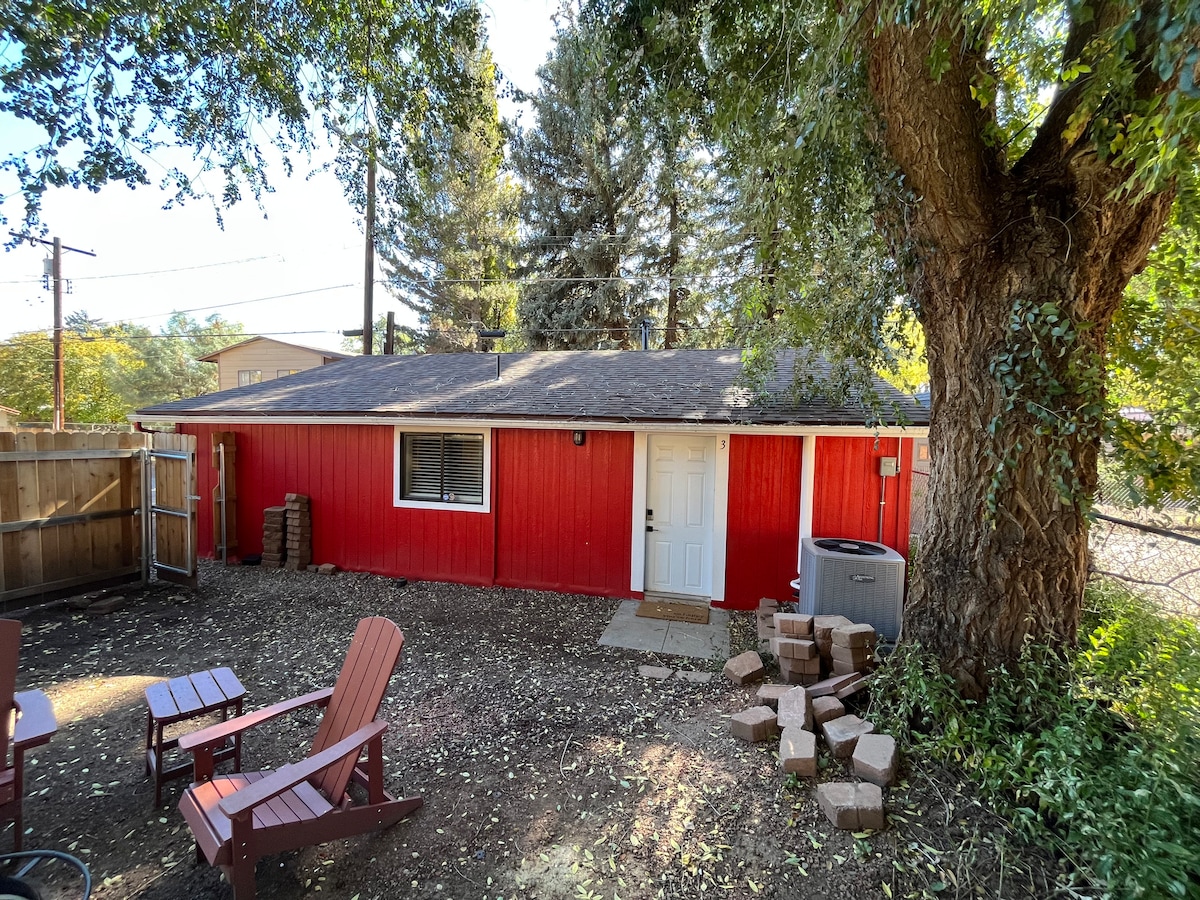 Bungalow remodelado de 2 dormitorios y 2 baños en el centro de la ciudad, en el extremo oeste del centro histórico de Flagstaff, Ruta 66, a 1/2 milla de la tienda de comestibles Basha's (10 minutos a pie), NAU a 3/4 milla (15 minutos a pie) de NAU y el Centro Médico Flagstaff. Armarios Shaker, encimeras de granito, electrodomésticos rojo cereza. Patio totalmente vallado con barbacoa de carbón, mesa de pícnic, sillas Adirondack y chimenea. Televisores inteligentes en la sala de estar y dormitorios con wifi de alta velocidad. Lavadora/secadora de tamaño completo. Aparcamiento para un coche al lado de la casa.