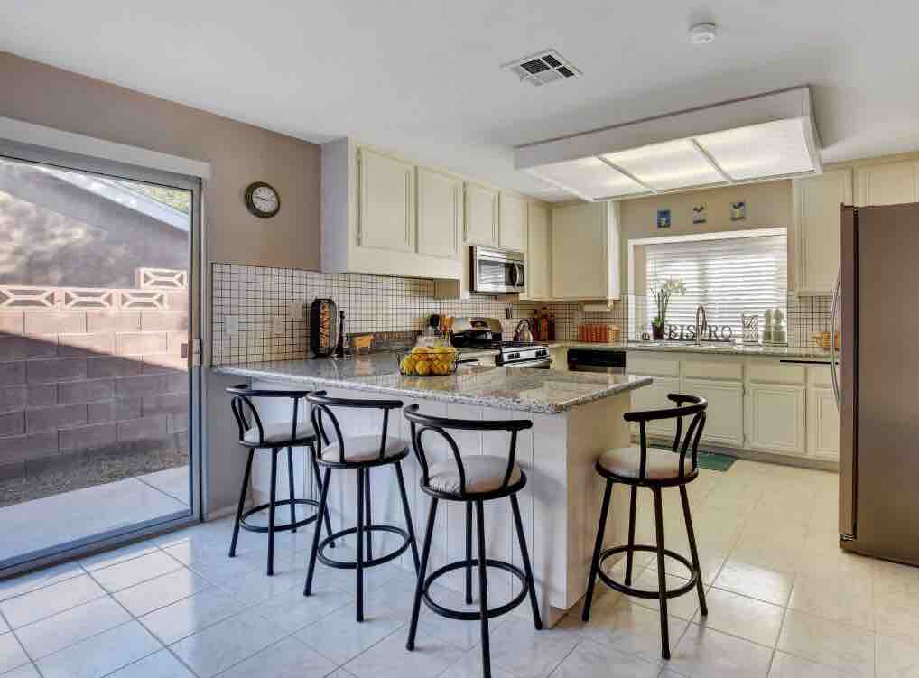 A guesthouse (casita) within a 1-acre compound that’s 8 minutes from the airport, 10 minutes to the Strip and less than 15 minutes from the new Allegiant Stadium. The casita consists of 3 mini-suites (a bedroom with private full bathroom), a living/dining room, full kitchen, laundry and powder room. Common area outside of the guesthouse includes the pool, spa, exercise room, pickle-ball court, bocce court and patio with a gas and an electric BBQs. FOR NO SHARING OF COMMON AREAS—See Below.