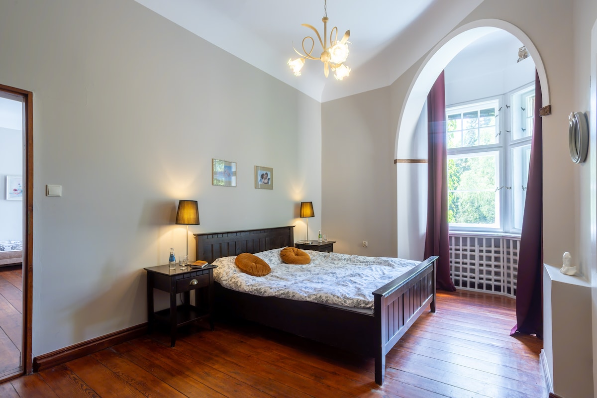 Apartament mieści się w budynku wolnostojącym nad jeziorem, na pierwszym piętrze, wyposażonym w windę. Każde pomieszczenie zostało urządzone z dbałością o szczegóły. Do Państwa dyspozycji oddajemy jedną sypialnię z podwójnym łóżkiem i światłowodowym gwieździstym niebem na suficie. Pokój dzienny z dużym rozkładanym narożnikiem i aneksem kuchennym oraz przytulną łazienką.W każdym pokoju znajduje się telewizor z dostępem do internetu i darmowym WiFi. Kuchnia jest w pełni wyposażona i urządzona.