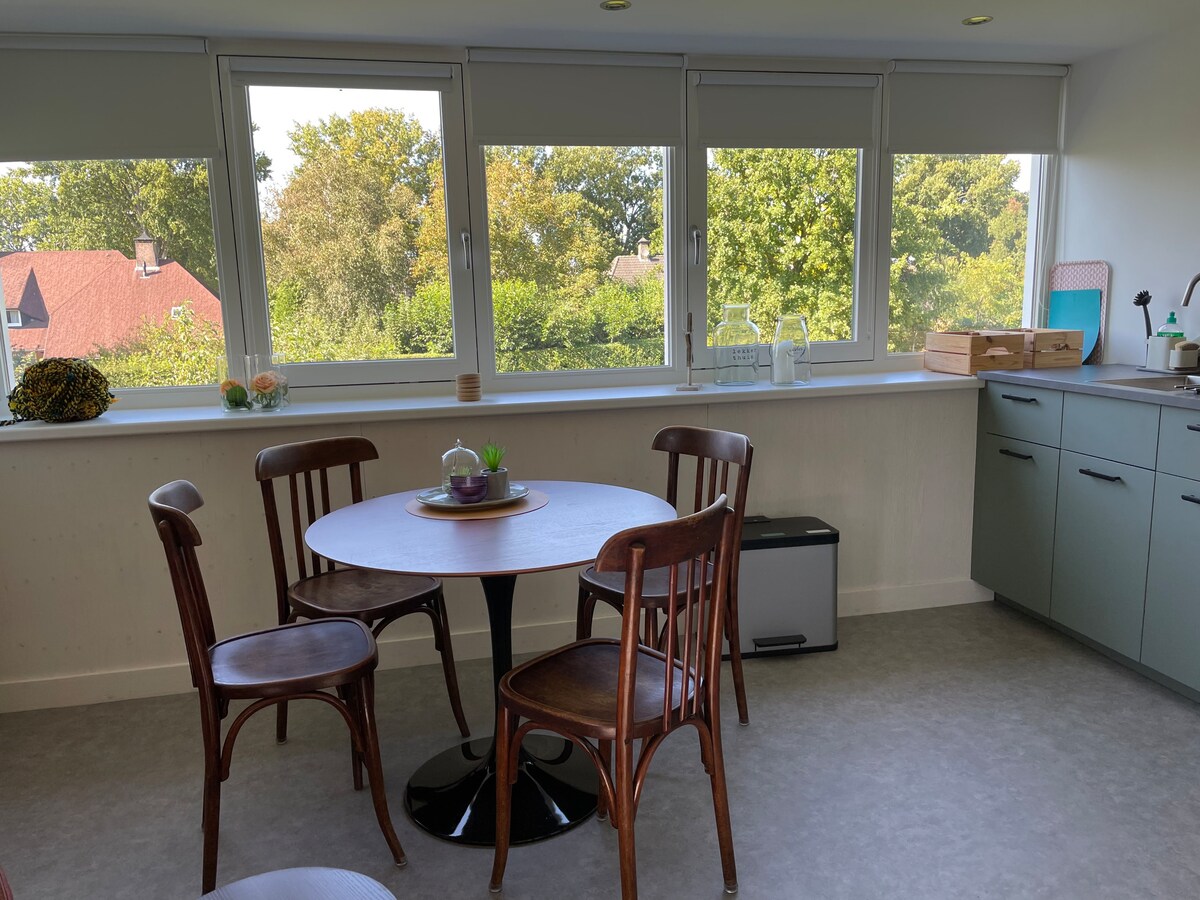 Het appartement bevindt zich op de tweede verdieping boven het atelier. Er is een tweepersoonsbed aanwezig. In de ruime slaapkamer kan op verzoek een volwaardig extra bed worden bijgeplaatst voor een derde gast. Daar betaalt u €25,00 extra per nacht voor. U hebt beschikking over een slaapkamer en eigen badkamer. Daarnaast is er een woonkeuken met een complete keuken. U bereikt het appartement via een eigen ingang met trap.