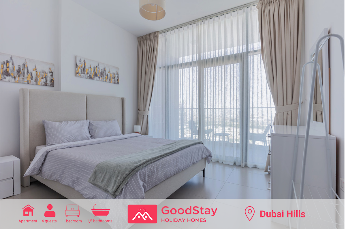 This beautiful 1-bedroom apartment is located in Dubai Hills, a newly-built luxirious area. It has all AMENITIES you would need and is EQUIPPED with everything you could need for a comfortable living. It is close to beautiful Dubai Hills Park, highly-rated Dubai Hills Mall, Golf Club, and King's College Hospital. HEATED POOL, GYM, and PARKING is available on premises to all guests for FREE. Living room has a comfortable sofa-bed and a 55-inch TV equipped with all streaming services.