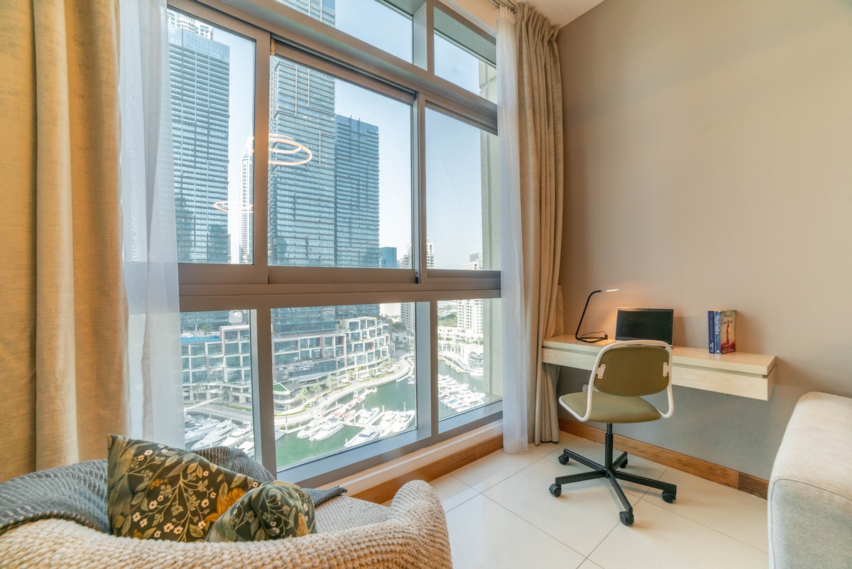 Estudio totalmente equipado con un sofá cama adicional, balcón espacioso y Netflix, ubicado en una nueva torre en el distrito turístico de élite Dubai Marina. Hay muchas atracciones y una estación de metro a poca distancia a pie. A 15 minutos a pie de la icónica playa JBR, justo al lado del centro comercial Marina, restaurantes, cafeterías, hipermercado, farmacia y spas a pocos minutos a pie. Estoy encantado de hacer que tu estancia sea alegre y cómoda, estoy disponible para ayudarte y ofrecerte descuentos en restaurantes y atracciones.