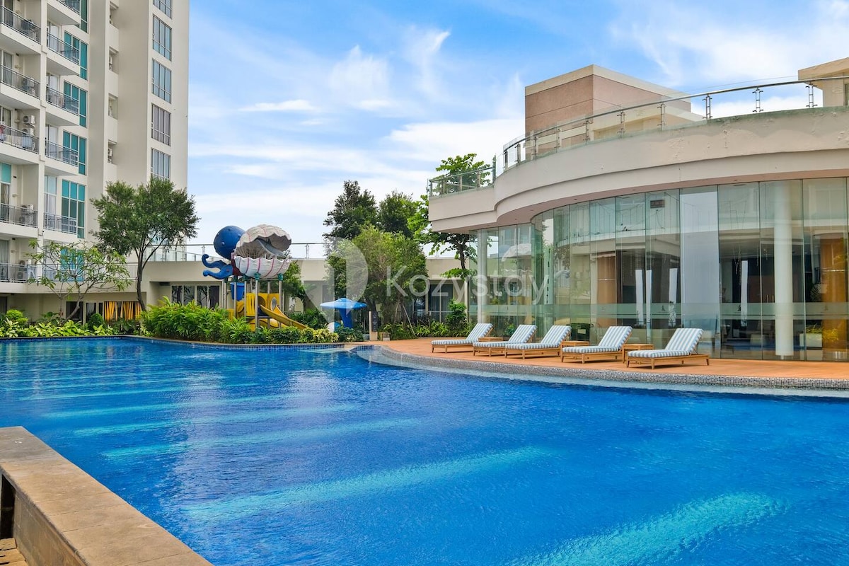 Descubre nuestro apartamento en el centro de la ciudad donde el diseño moderno se une a la comodidad familiar. Disfruta de los interiores espaciosos con electrodomésticos de alta calidad. El apartamento es una unidad de esquina, lo que significa que obtendrás una piscina de temática tropical y una impresionante vista a la ciudad en todas las habitaciones. El departamento está directamente conectado con Hub Life y Taman Anggrek Mall, que están a unos pasos del centro comercial Central Park Mall.
