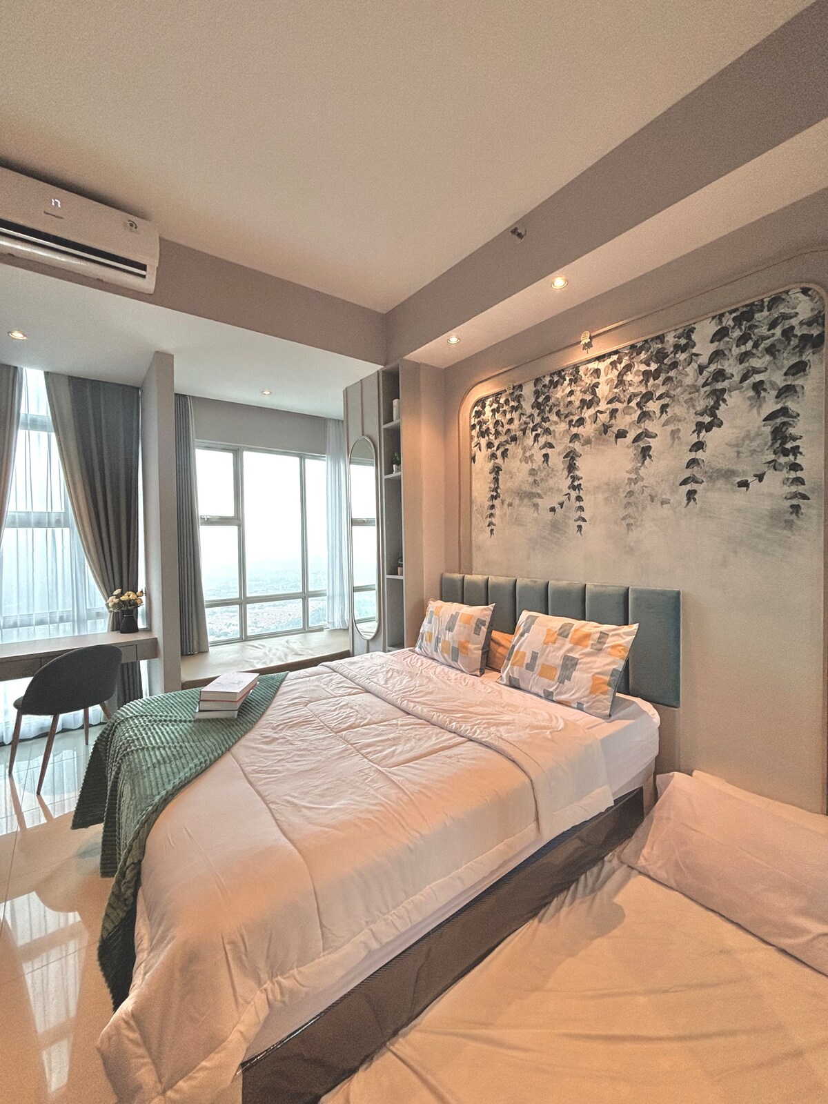 Elegante y lujoso apartamento de dos dormitorios en Anderson Tower en la parte superior del centro comercial Pakuwon. Disfruta de una experiencia de lujo en este céntrico alojamiento en West Surabaya, con sus amplias instalaciones. La piscina infinita junto con la zona de juegos acuáticos, el gimnasio, el jardín temático y el acceso directo al centro comercial Pakuwon para ir de compras y entretenerse, se combinan para acompañarte a la mejor manera de vivir.
