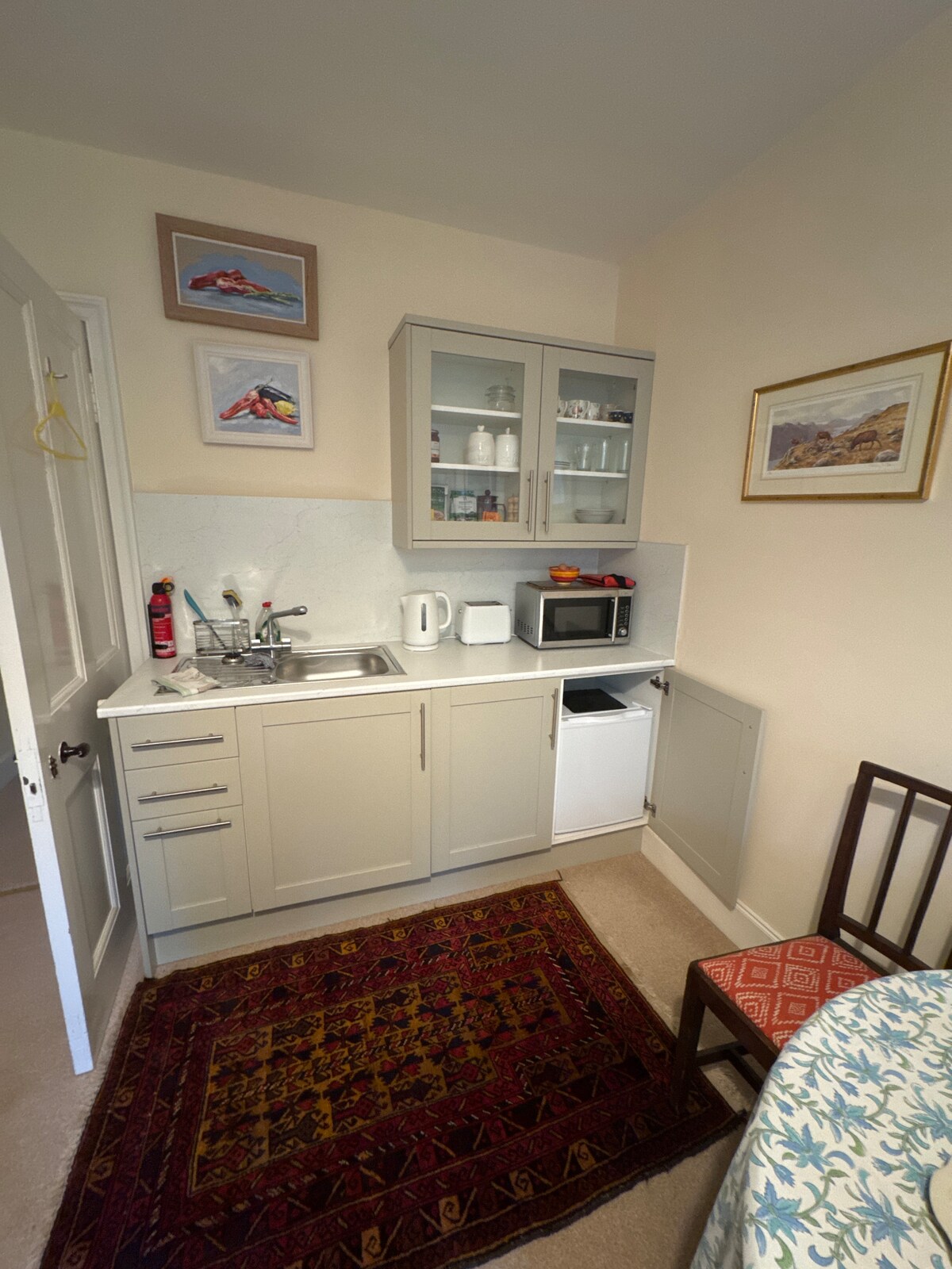 This is a ground floor, self contained flat within a beautiful country house. The flat has its own entrance. Knockhill is a family home and working farm. The flat is a perfect stop off for those travelling up the M6/M74. A twin room (can be made up as a double) with TV and en suite bathroom (bath, over bath shower, basin and toilet), a sitting room with small kitchen/dining area and sitting area with TV and electric stove heater. Please note the only cooking appliance is a microwave