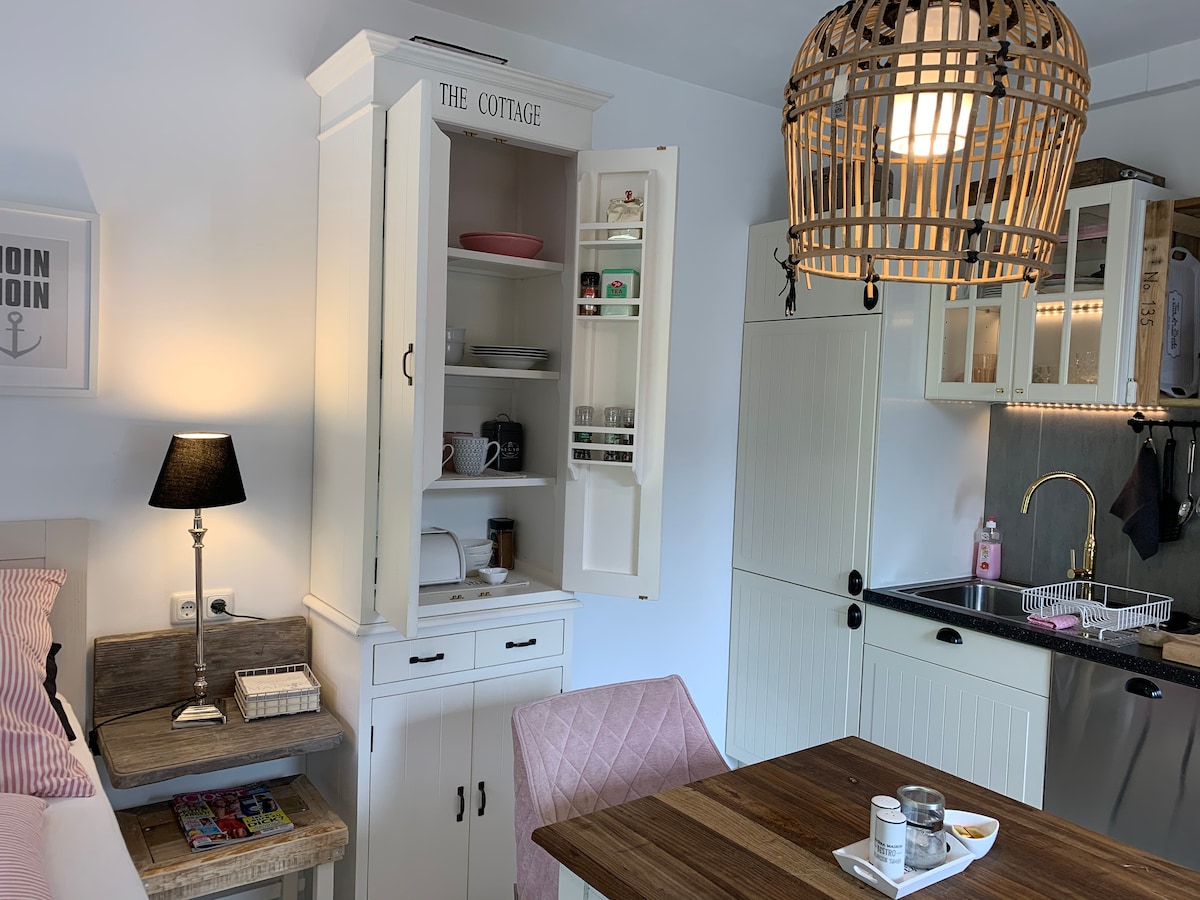 Sankt Peter - Ording for Two Elegante, apartamento moderno para un máximo de 2 personas en las inmediaciones del Mar del Norte, a solo 100 m del muelle y Dünnentherme. Mi aplicación. Juste 1 es muy popular porque tiene una entrada completamente independiente, está distribuida a nivel del suelo. Justo en el centro, pero muy tranquilo, ubicado directamente en el Kuhrwald. Las toallas y sábanas incluidas.