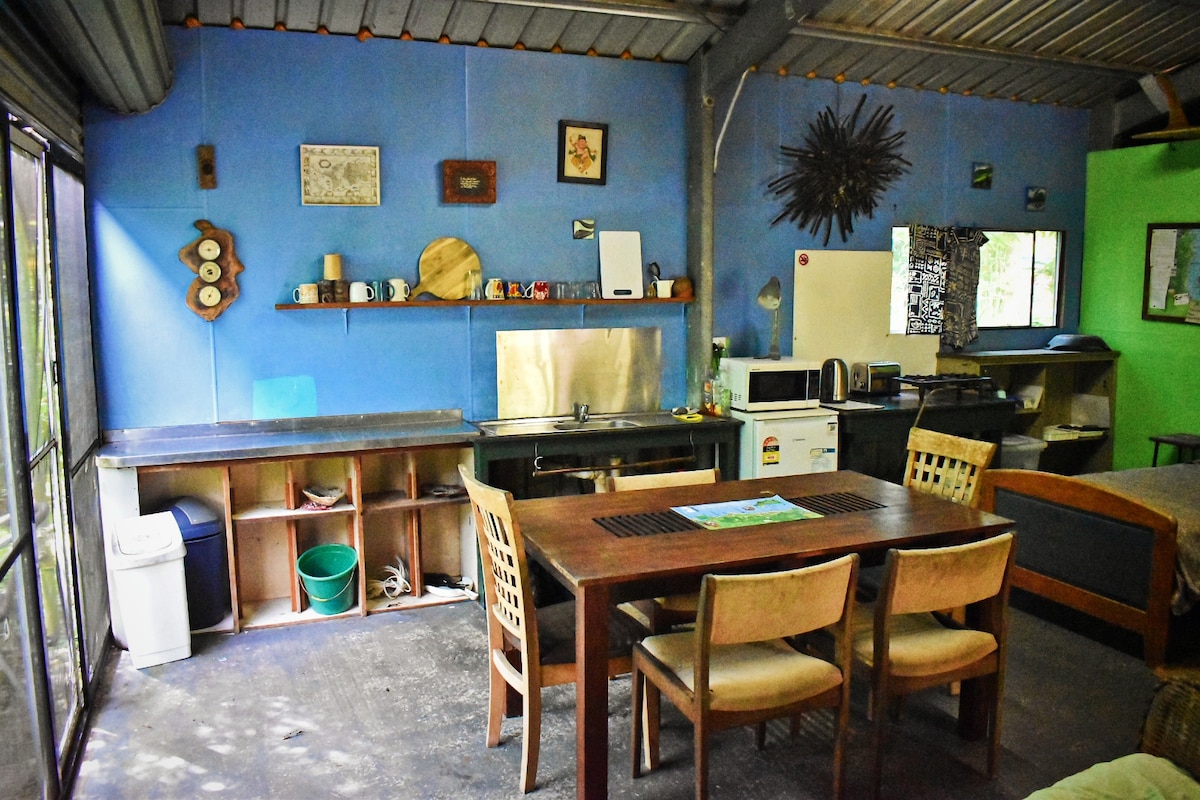 Acogedora cabaña independiente situada en la selva tropical. Cerca de carril bici/pasarela, pizzería y lavandería. A 2 minutos en coche del supermercado y de la tienda de bebidas. Se proporciona té/café de cortesía. Nuestro alojamiento es ideal para parejas, familias pequeñas y viajeros solos. Por favor, lee el anuncio y las normas de la casa antes de reservar :)