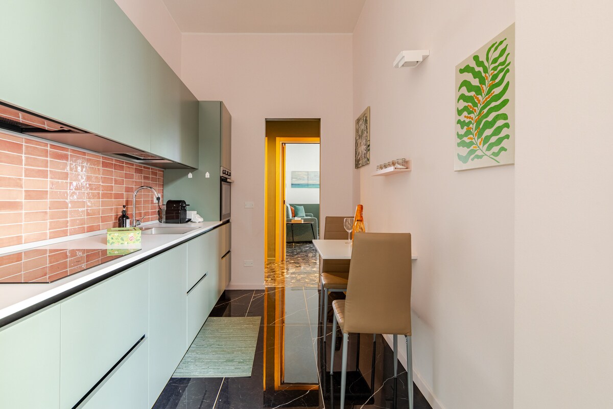 En el corazón de Milán, este apartamento de lujo, totalmente renovado en agosto de 2023, te hará sentir como en casa con todas las comodidades de los pisos modernos de alta gama y es la base perfecta para descubrir la ciudad a pie. Decorado cuidadosamente con accesorios de diseño italiano, alberga hasta 4 huéspedes. A través de un espacioso pasillo se entra en la sala de estar con comedor y cocina en esquina; un dormitorio doble con baño completo de todas las comodidades. Citado en la revista de arquitectura en línea Domusweb