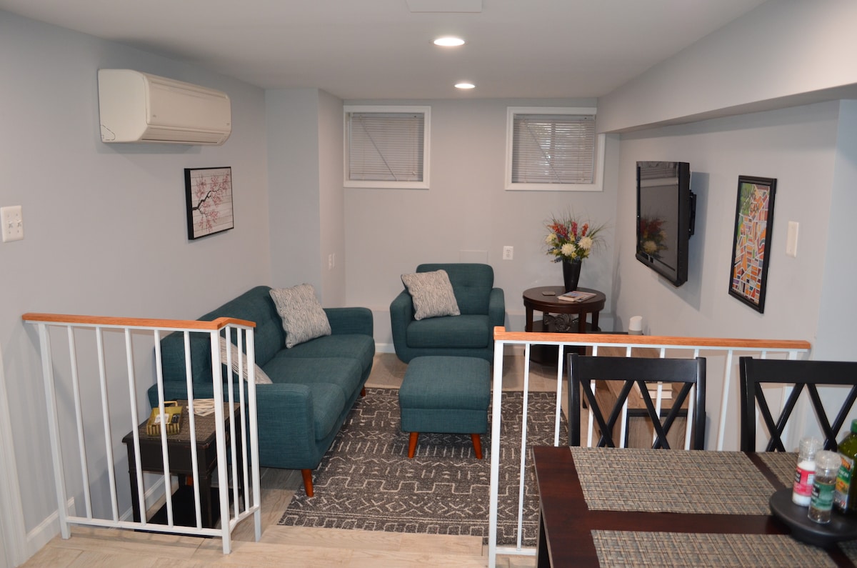 Ubicación idílica y transitable cerca del metro de Woodley Park y la vida urbana de Adams Morgan. Calvert Street Cottage ha sido cuidadosamente diseñado para satisfacer las necesidades de todos los huéspedes. Los 840 pies cuadrados El estudio inglés de sótano tiene una cocina totalmente equipada, un baño grande con ducha a ras de suelo y lavadora y secadora en la unidad. Puede que te tiente quedarte con todos los detalles cuidadosamente pensados. Pero todo lo que DC tiene para ofrecer está a un corto paseo a pie, en bicicleta o en metro. Ideal para una noche o estancias prolongadas. *Sin gastos de limpieza*