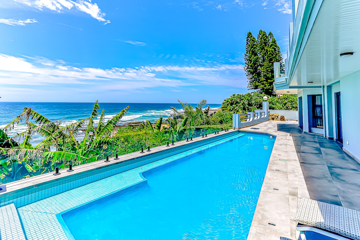 Esta villa de lujo con autoservicio es perfecta para crear recuerdos con tus seres queridos. Con Salt Rock Beach debajo de ti y dos cubiertas de entretenimiento, una exterior, con opciones de Braai de carbón o gas, y una gran área cubierta con una piscina privada climatizada, las familias y los amigos tienen el lugar perfecto para relajarse y estar juntos. Casa para 10 personas - todas las comodidades Piscina privada climatizada cubierta, 5 dormitorios, 5 baños Estacionamiento seguro, acceso remoto, Aire acondicionado completo Televisión inteligente Energía solar
