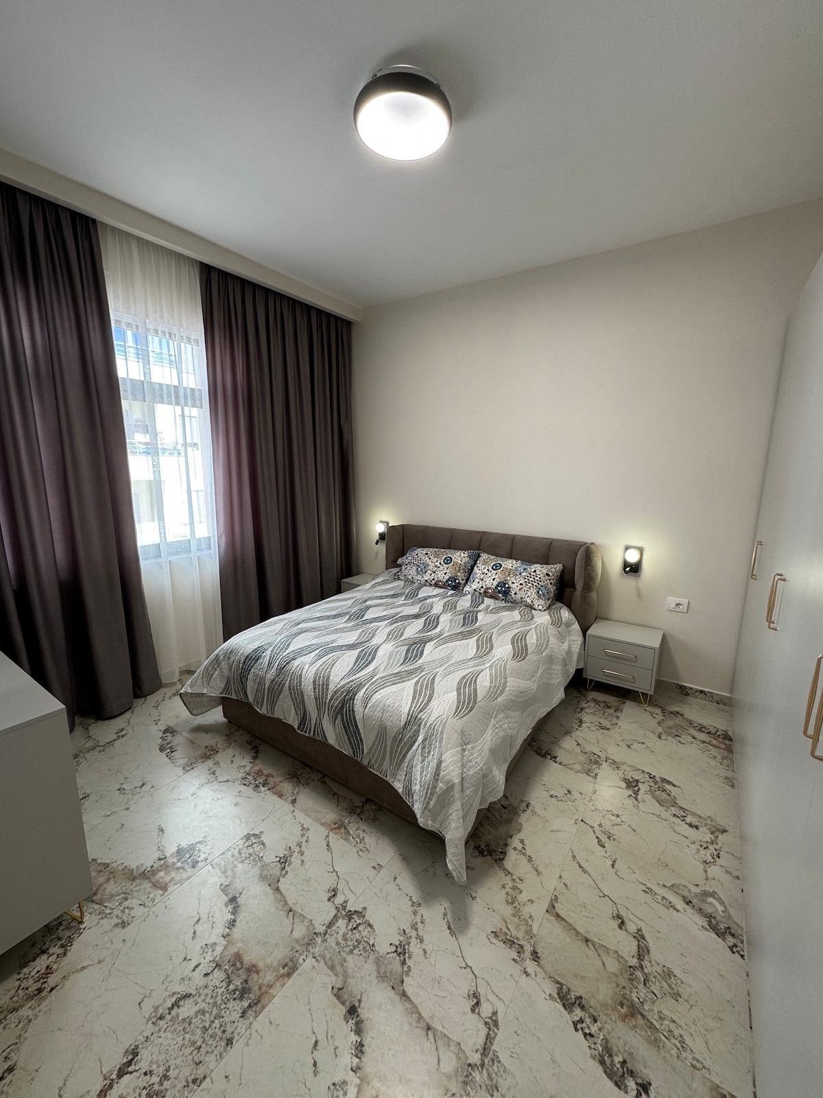 ⚠️ IMPORTANTE: Este anuncio es SOLO para UN estudio, NO para dos dormitorios. Pregunta antes para especificar qué estudio está disponible. Alójate a pocos pasos de la plaza Skanderbeg en un estudio o suite 100 % nuevo y de alta gama. 1- Estudio moderno de 35 m² (baño privado, SIN bañera) O 2- Suite de lujo de 48 m² con bañera. Cocina totalmente equipada, comedor/espacio de trabajo, parquet premium, iluminación LED y de foco, paredes venecianas y vidrio del piso al techo. Cerca de todo. Comodidad de hotel. Reserva ahora. IDEAL PARA PAREJAS (2) o viajeros SOLOS.