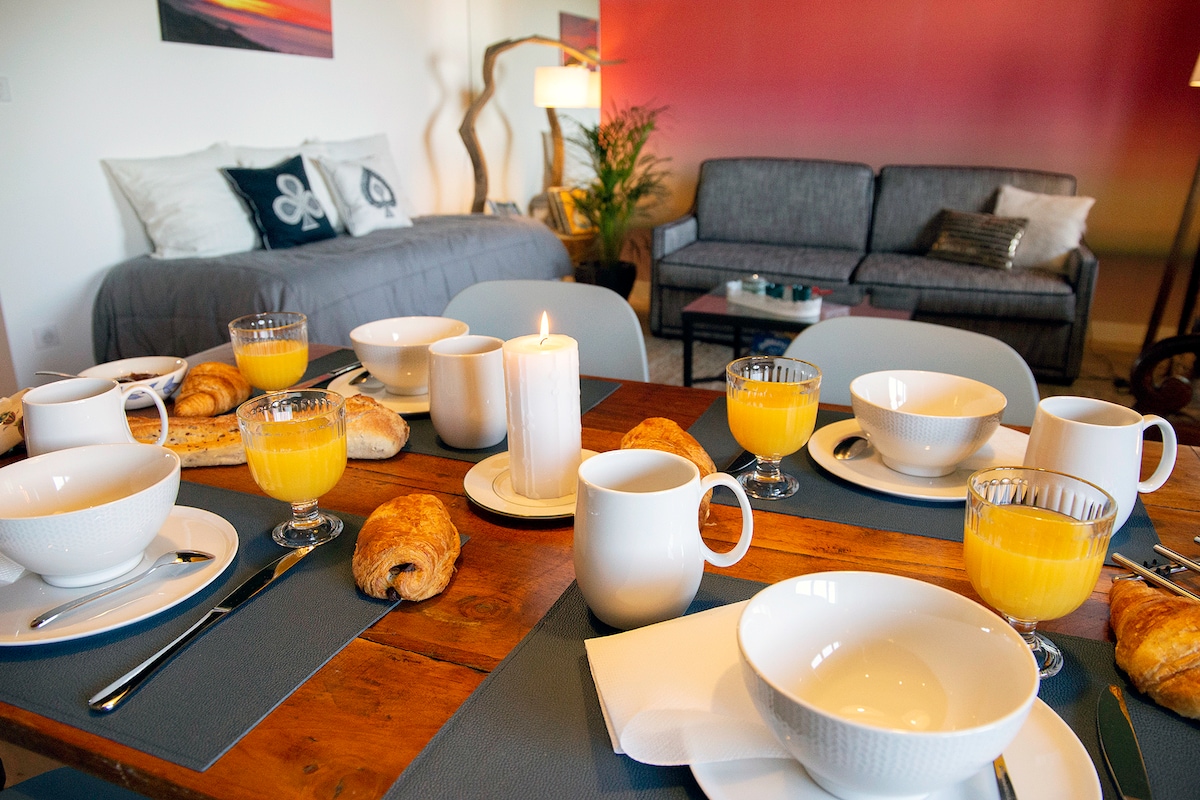 Disfrute de un alojamiento elegante y céntrico de 50 m2. Reformado, en un edificio con carácter y seguro. Situado en la línea del tranvía a 2 pasos del mercado de San Pedro y de todos los servicios, a menos de 300 m de la plaza de Jaude y de la catedral y a 1 km de la sede de Michelin. Conexión wifi . Dispone de una sala de estar de 30 m2 con una cocina equipada. La habitación es tranquila al lado del patio, cama de 160, baño. Posibilidad de aparcamiento privado y comidas bajo petición. Café y té incluidos.