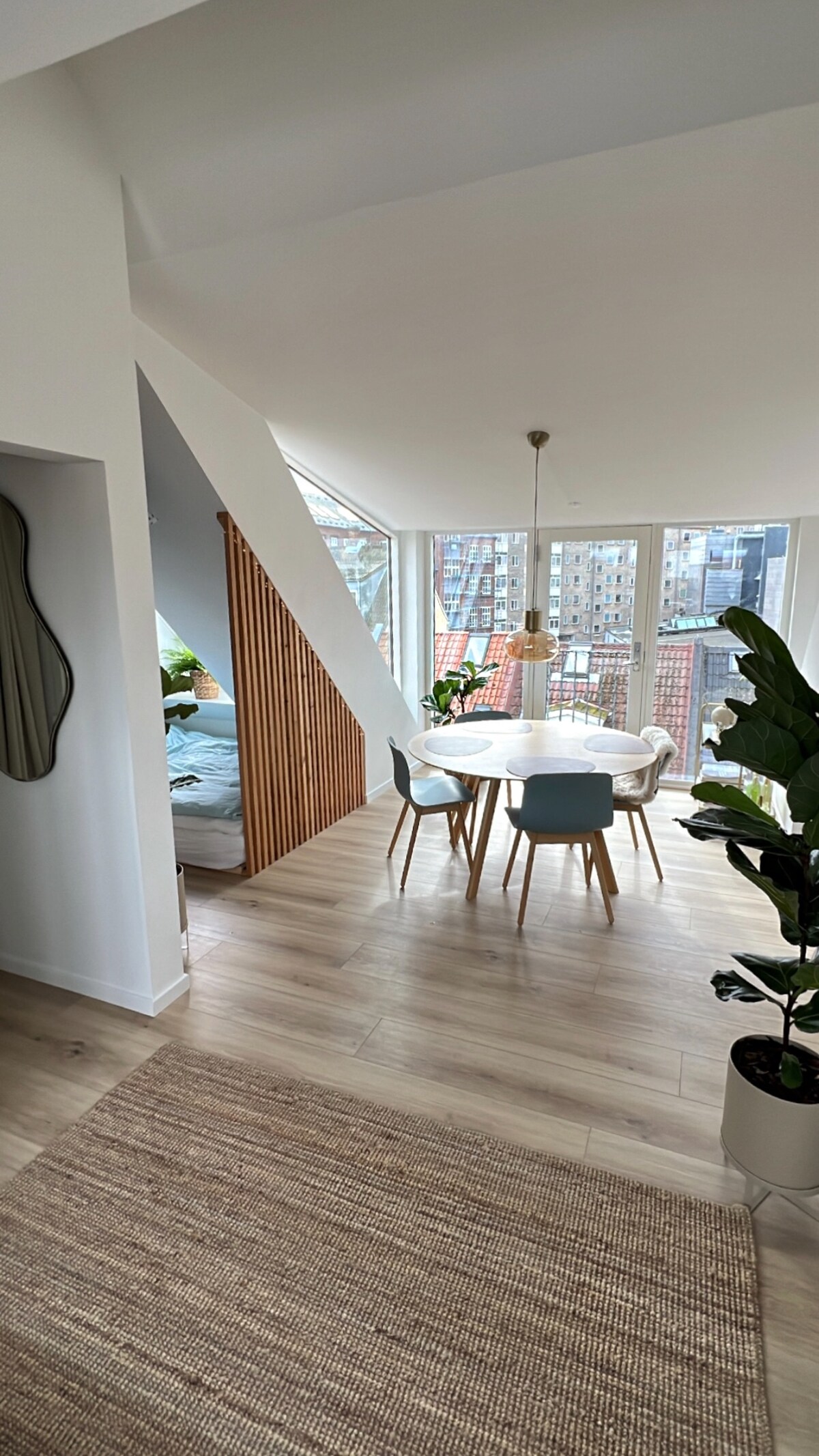 Bonito y espacioso apartamento en la hermosa Mejlgade. Ubicación en Aarhus C a poca distancia de buenos restaurantes, tiendas, parques, Aarhus Ø y muchas atracciones diferentes. El apartamento está diseñado con grandes ventanales que proporcionan luz natural. Está decorado con grandes cuadros, espejos, plantas, etc. para crear un ambiente acogedor. Perfecto para parejas, familias o grupos de hasta 4 personas (5 si una persona duerme en el sofá; escriba un mensaje si es necesario).