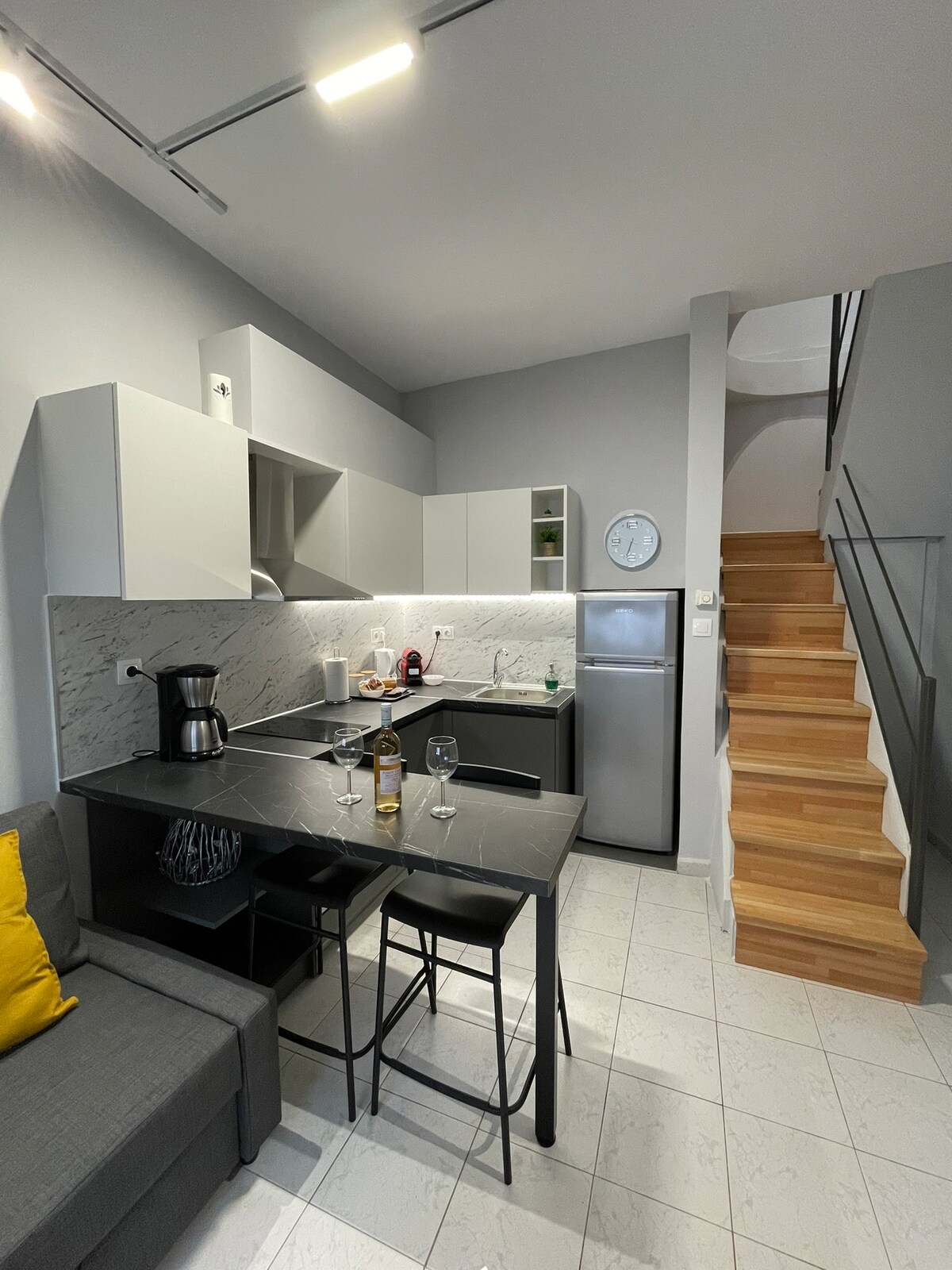 ¡Relájate en un espacio estético muy bonito y moderno, a 5 minutos de la cosmopolita playa de Nea Chili! ¡Alta estética y muchas comodidades caracterizan esta joya especial! ¡Prepara un tentempié rápido o una comida abundante en la cocina totalmente equipada! ¡Piérdete en un baño con sales y aceites en la gran bañera! ¡Su ubicación única proporciona un acceso rápido a las tiendas de la ciudad, al mismo tiempo que ofrece paz y privacidad gracias a su pintoresco patio!