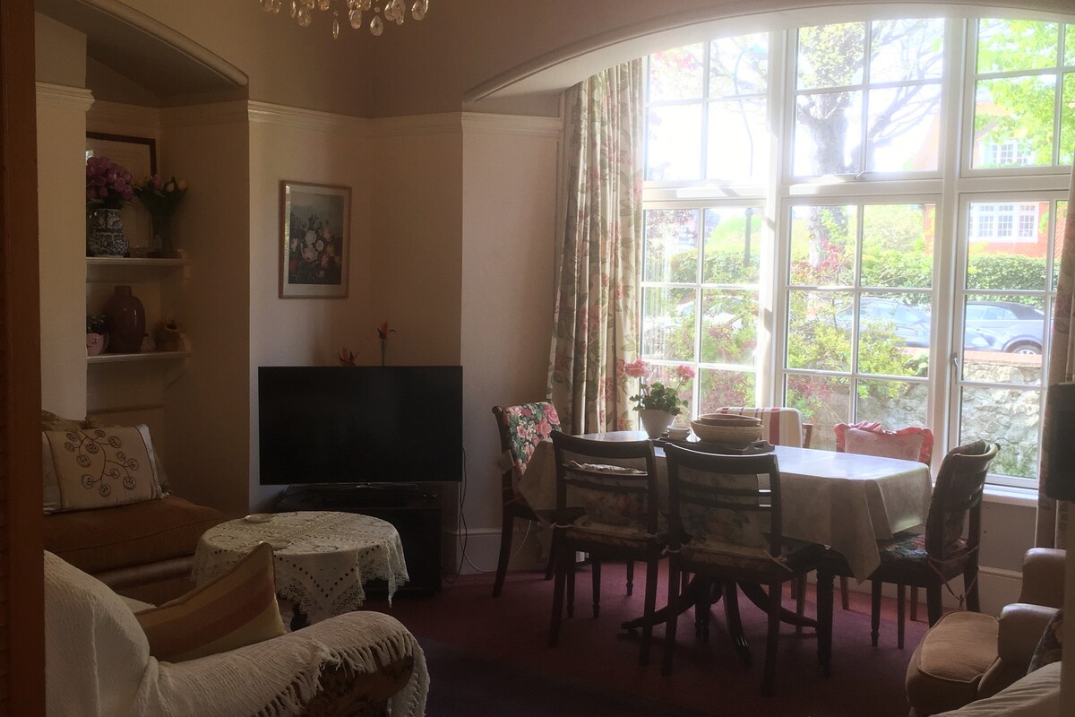Un apartamento bien equipado en la planta baja junto al mar con vistas al mar, con el mar a solo 10 metros de distancia, un dormitorio bien equipado, un baño con bañera y ducha, amplio salón con características originales y techos altos, incluida la cornisa victoriana, a poca distancia a pie del tenis, teatros, pubs, restaurantes, tiendas en un edificio victoriano tranquilo que puede alojar hasta tres huéspedes. Estacionamiento de pago disponible (estos se cobran localmente) También tenemos un sofá cama para uno en el salón.