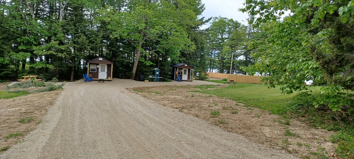 Cabañas rústicas de 10 x 12. Dos camas individuales en cada cabaña. Cada cabaña incluye dos sillas Adirondack, chimenea, mesa pequeña y dos sillas en el interior, 2 linternas LED y 1 ventilador, 5 galones de agua potable, mesa de cocina sencilla al aire libre, una mesa de picnic, ducha de propano bajo demanda, el baño es un retrete portátil compartido con la otra cabaña o un inodoro compostable. Ambas opciones están disponibles. Estas están FUERA de la red. No hay electricidad ni agua en las dos cabañas.