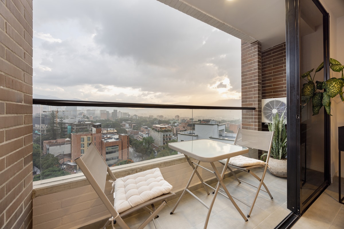 Moderno apartamento con vistas al horizonte y entrada 24/7 en El Poblado