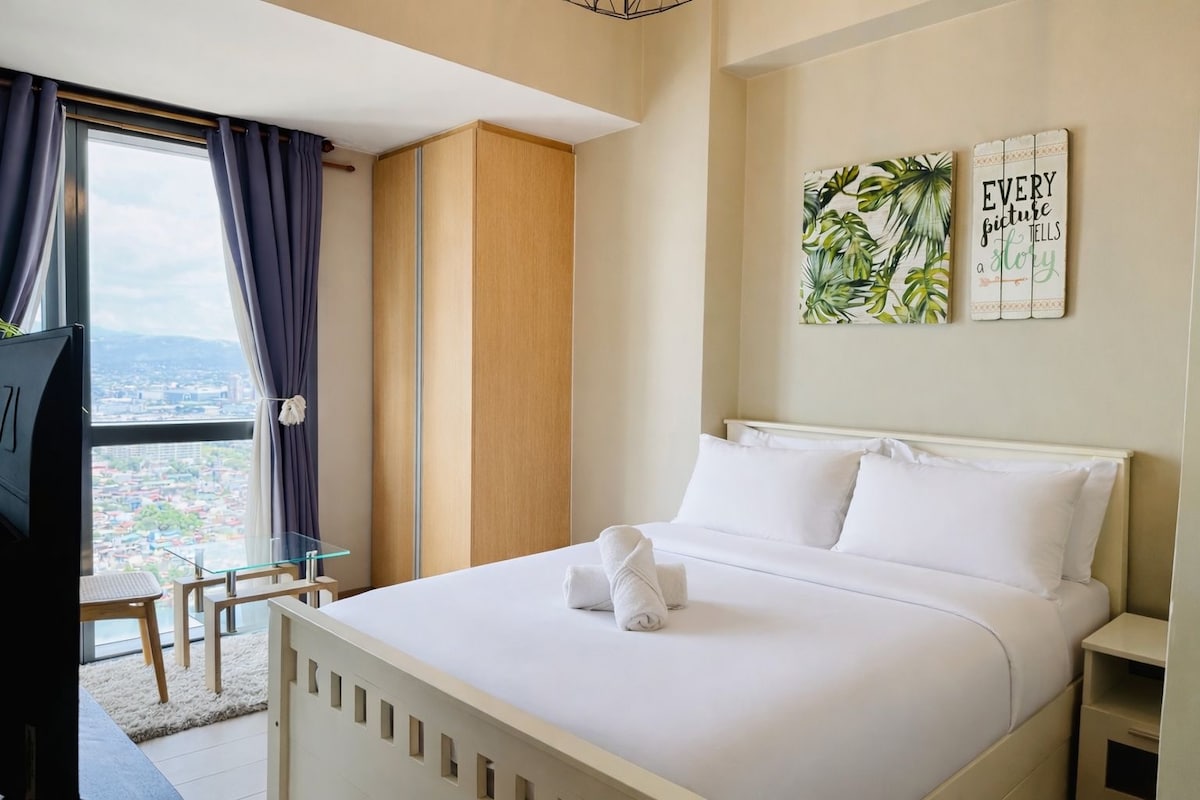 ¡Bienvenido a tu limpio y moderno alojamiento en Eastwood City! Este moderno y elegante departamento es perfecto para viajeros de negocios, parejas y vacaciones. ◆ Cama tamaño queen de calidad hotelera para un sueño reparador. ◆ Iluminación moderna e interiores luminosos y relajantes ◆ Aire acondicionado completo para mayor comodidad durante todo el día. ◆ Wifi rápido ideal para trabajar o transmitir ◆ Televisión inteligente con Netflix y YouTube ◆ Cocina pequeña bien equipada ◆ Baño limpio con ducha caliente y fría ◆ Sofá suave y diseño cálido perfecto para relajarse después de un largo día