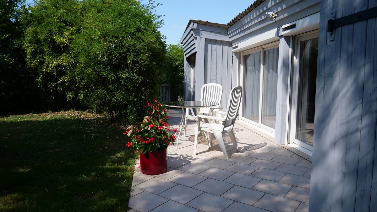 Chalet cosy et confortable de 40m2 au calme avec sa cuisine aménagée, séjour + tv +wifi, chambre séparée+ penderie, wc indépendant, salle d'eau douche italienne, jolie terrasse, gdes baies vitrées, lumineux, profitez d'une gde et belle piscine 6x12 partagée et respect des règles du covid-19.