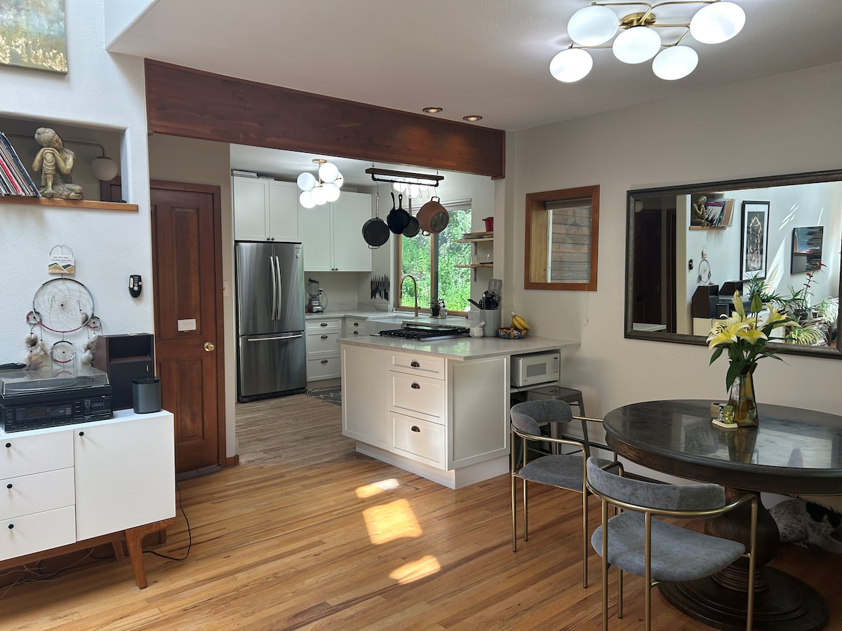 ¡Lindo escondite en el centro de Boulder! Habitación estudio limpia y acogedora con baño privado, comodidades y zona exterior. Arquitectónicamente conectado con un hogar principal con una familia amable. Por favor, ten en cuenta que, como el apartamento está conectado a la sala de estar principal, el sonido silencioso viaja entre los espacios. Honramos el horario tranquilo entre 10 y 7. La mayoría de los huéspedes no encuentran que esto sea un problema. Como se ve en las fotos, la cama Murphy se puede plegar durante el día para tener más espacio.