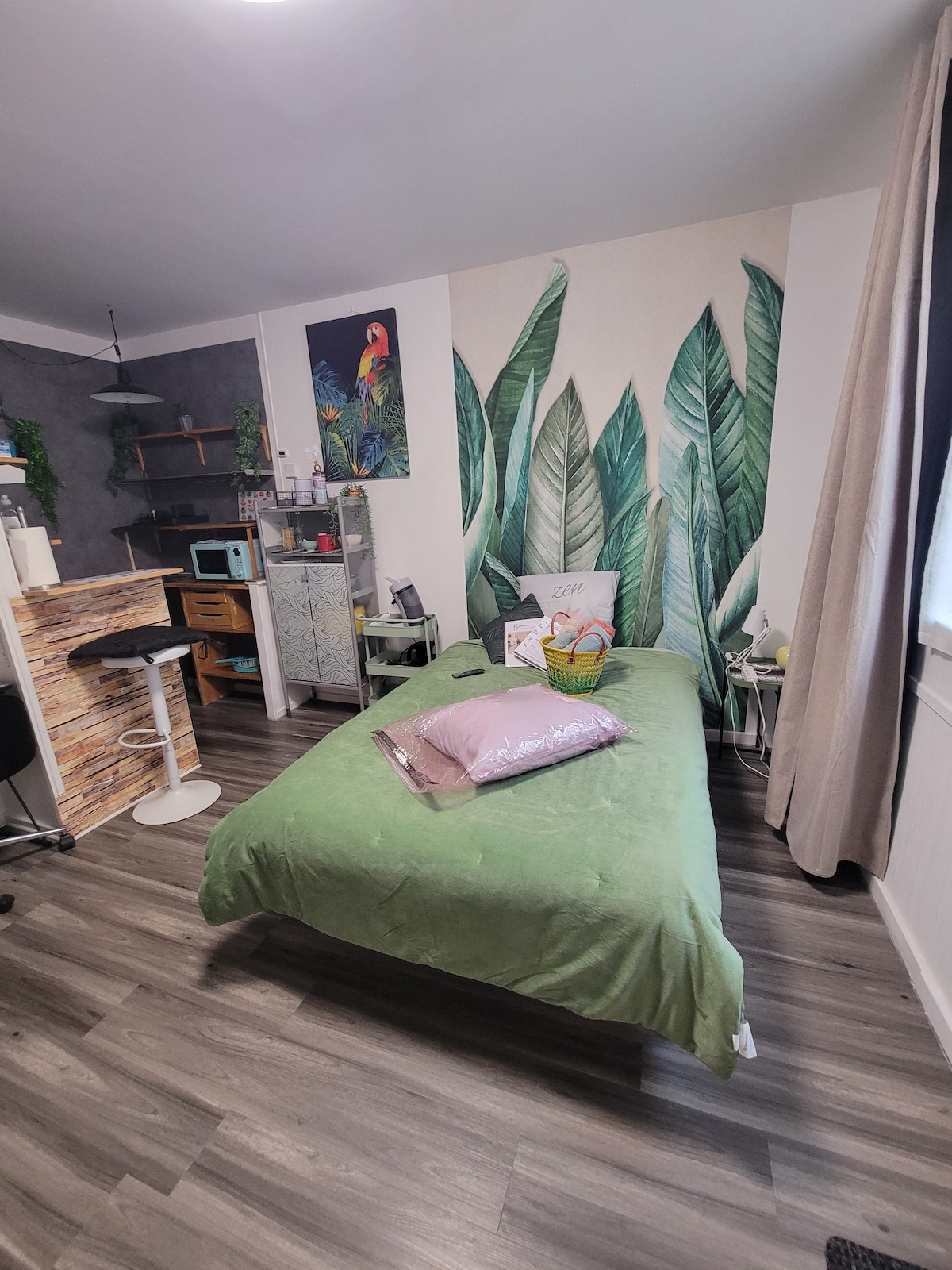 Découvrez l’expérience unique que notre appartement propose avec une immersion totale dans un véritable cinéma privatif 🎞️ Doté d’un grand écran de projection de 280cm et d’un canapé tout confort, dégustez vos popcorns devant le film de votre choix. Profitez d’une chambre spacieuse et un lit à mémoire de forme ainsi que d’une belle terrasse exposée plein sud. La salle de bain et son pommeau multi jets est un vrai plus.