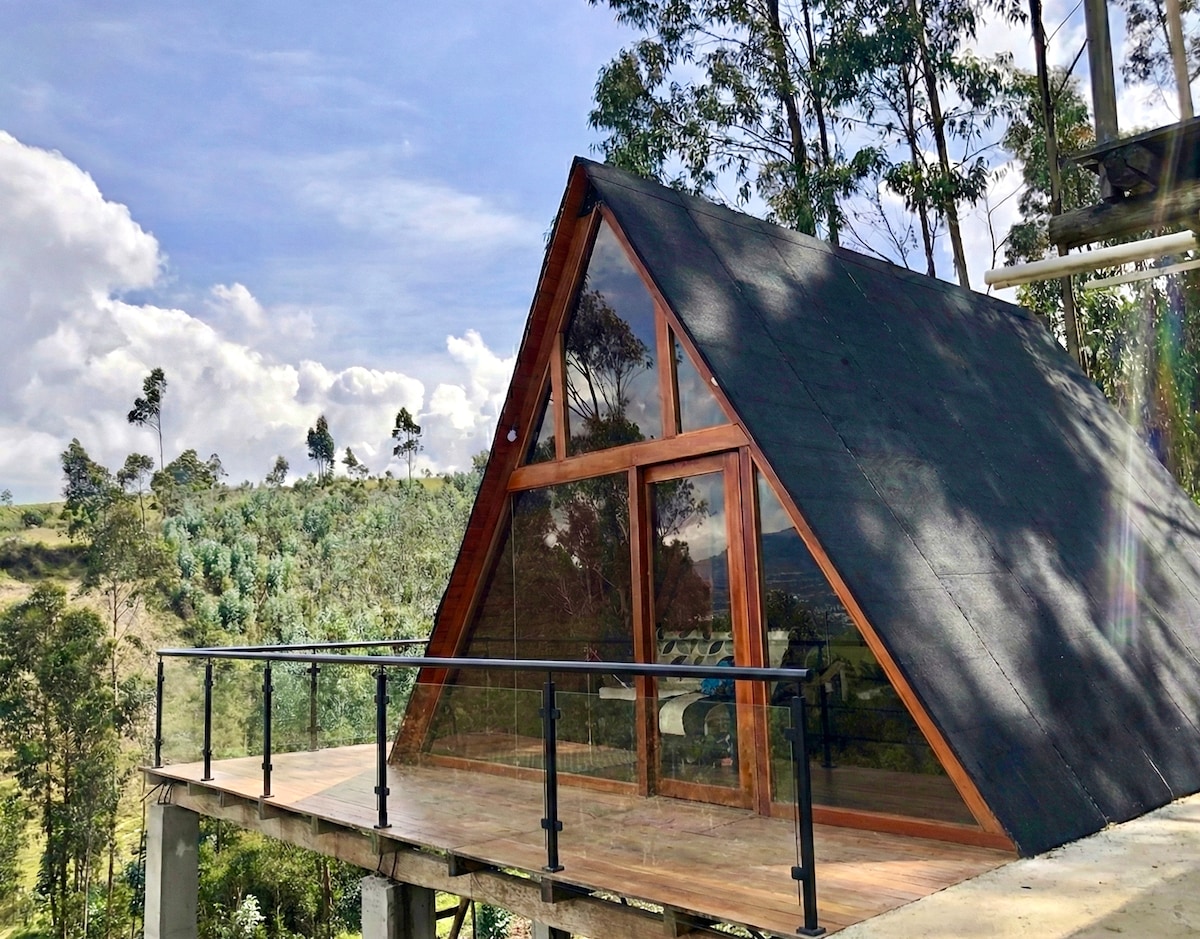 Casa aislada térmicamente 1000m2 de privacidad Incluye chimenea interior suspendida de combustión lenta Ventanas de seguridad de vidrio templado (se abren) Cocina amplia con 2 quemadores Desayunador con vista al nevado el altar y dormitorio con vista directa al Chimborazo Baño con ducha (agua caliente ) Closet y maletero Zona de fogata exterior Ideal para parejas Si tiene wifi Disfruta de un increíble paisaje, cielo estrellado y romanticismo en las faldas del Chimborazo en una zona segura