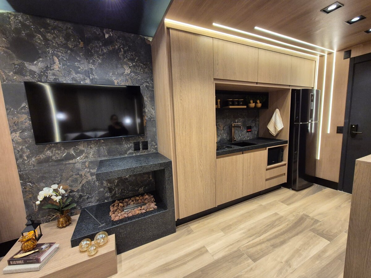 Transpórtate a la isla de Java y disfruta de una experiencia única en este lugar mágico y muy bien ubicado. Vista única del Valle de Anhangabaú. Cama Queen, hidromasaje con cromoterapia, decoración única, cocina equipada, baño con superducha, Alexa, internet de alta velocidad, ropa de cama y juegos de toallas disponibles con una hamaca frente a la ventana. Además, disfruta de una increíble chimenea hecha de rocas volcánicas. Surrealista, ¿no? ¡Disfrútalo! 𝐉𝐨𝐬𝐞𝐟𝐚 𝐁𝐨𝐫𝐠𝐞𝐬