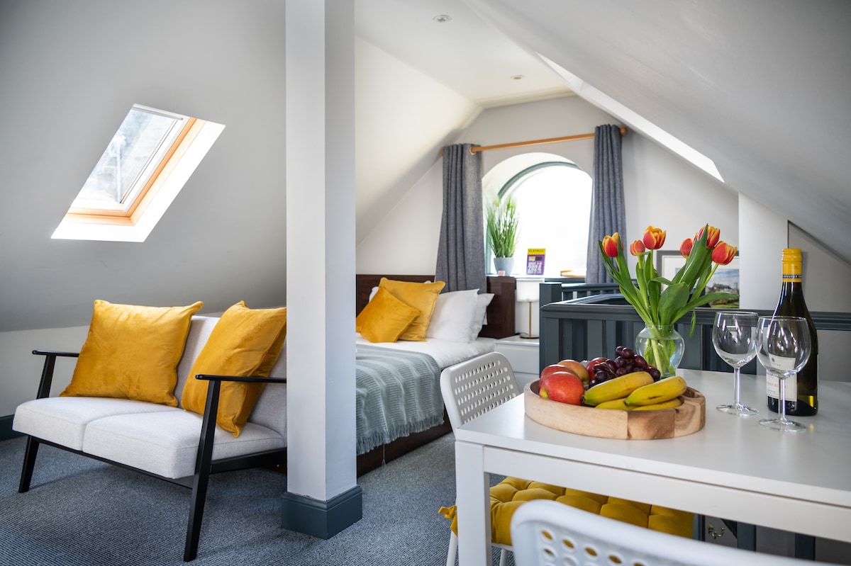 Nuestra suite con entrada independiente es ideal para una persona o una pareja. Su céntrica ubicación atraerá a las personas que quieran la experiencia completa de Edimburgo, pero que también quieran un lugar tranquilo al que volver y que tenga todas las comodidades de un apartamento moderno. También es un espacio ideal para aquellos que planean pasar tiempo de ocio o reunirse con amigos/familiares, pero que también necesitan pasar algún tiempo trabajando. El entorno luminoso, espacioso y tranquilo, con una mesa, un cómodo sofá y wifi ultrarrápido se adaptará perfectamente a tus necesidades.