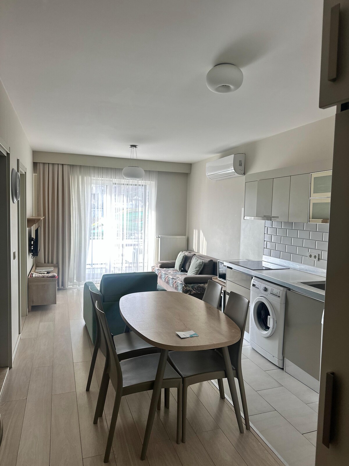 (Puedes ponerte en contacto con nosotros para obtener precios especiales mensuales entre septiembre y junio). Moderno 2+1 en un edificio nuevo en Akcay. Cuando se utiliza el paso subterráneo justo detrás de este apartamento, se tarda 5 minutos en caminar hasta la playa y el cordón. Se encuentra en un lugar decente en Akçay como barrio. Aceptamos reservas que solo son familiares. Güre, Altınoluk, montañas Kaz (5-10 min), aeropuerto de Edremit (15 min). En un edificio con cámaras de seguridad 24/7, el mercado está a 40 pasos.