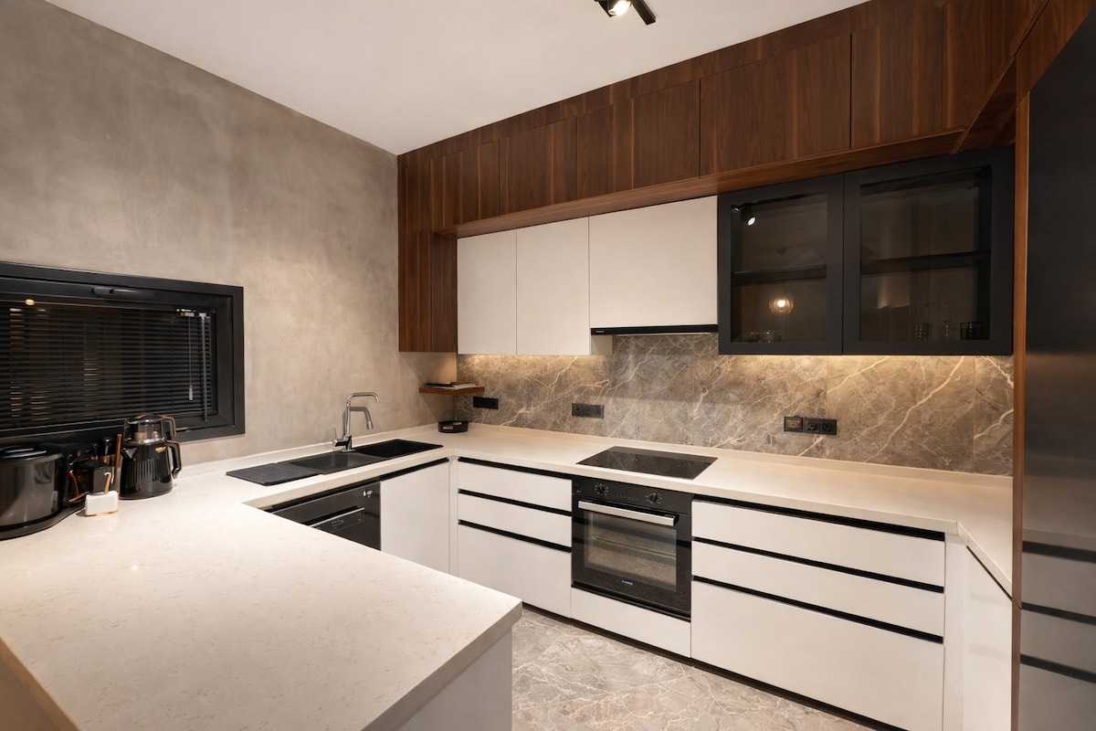 Te espera una estancia cómoda y placentera en nuestro departamento 1+1 de superlujo ubicado en el centro de Kyrenia. Con su sala de estar elegante, espaciosa y luminosa, está diseñado para alojar cómodamente a 3 personas. 📍 A poca distancia a pie de restaurantes, cafeterías, tiendas y lugares de entretenimiento. 🚗 Destinos populares como el antiguo puerto de Kyrenia, Merit y el casino Chamada están a 5 minutos en auto y a 15-20 minutos a pie. ✨ Moderna • Espaciosa • Ubicación céntrica