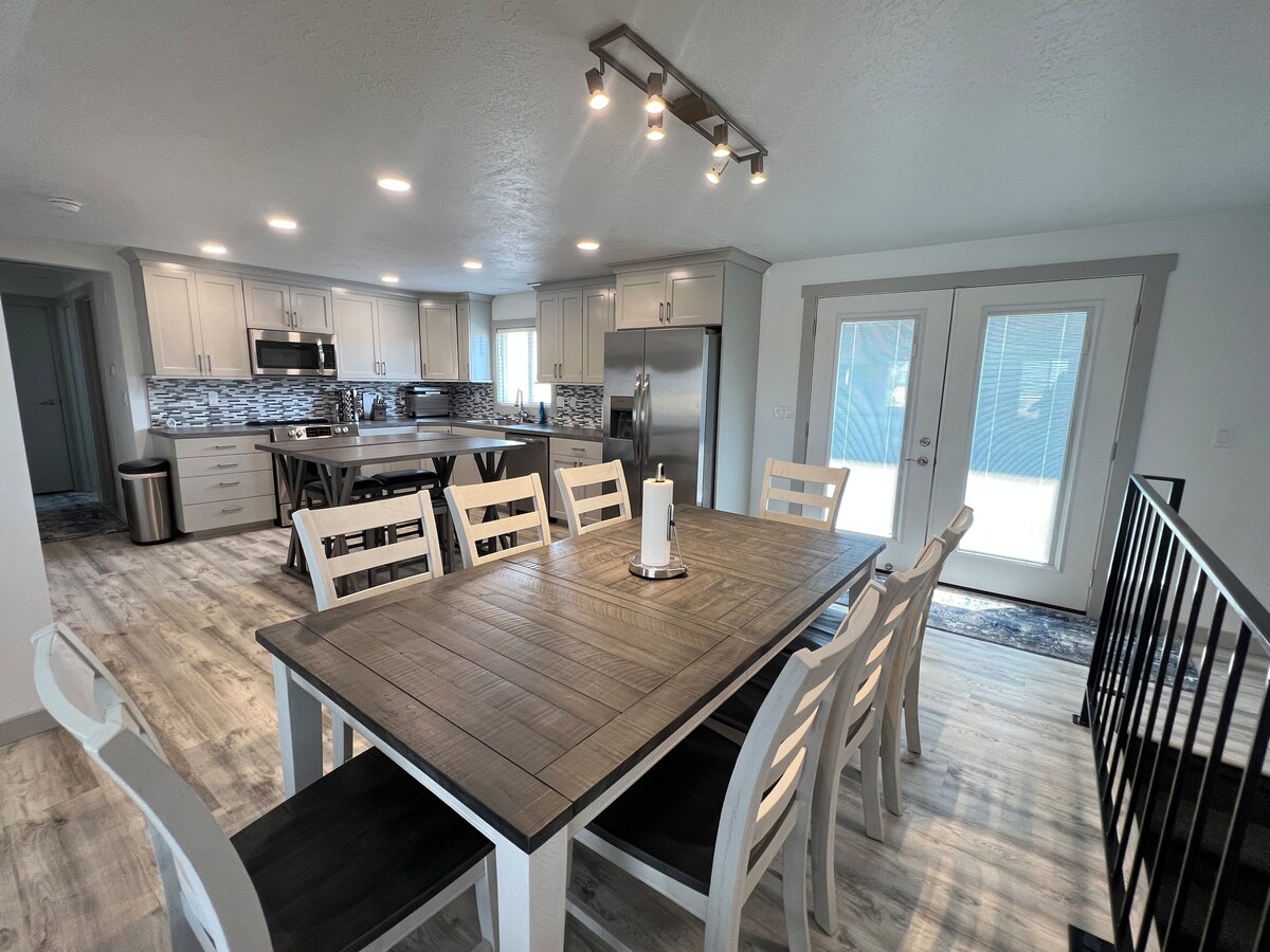 Private farmhouse with lots of room for family and parking, but just five minutes from Rexburg to the south or the Sand Dunes to the north. Good central location to start and end all your adventures. Four bedroom house with large family room upstairs and down. Pool table, ping pong table, large deck, firepit and large back yard to enjoy your family in the country. Upstairs washer and dryer for longer stays. Full kitchen with large farmhouse table for large gatherings.