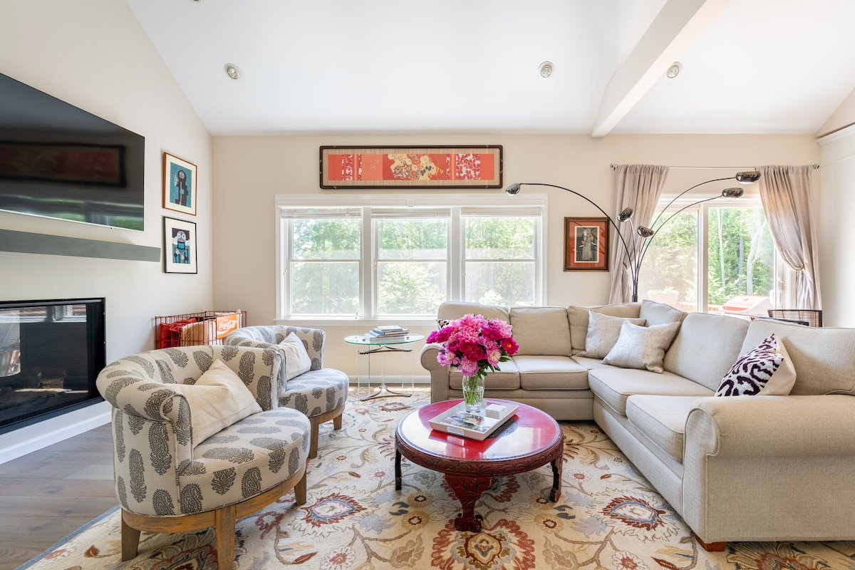 El encanto de Berkshires en esta granja de postes y vigas de 1800 totalmente renovada, ubicada en 5 acres de parque. Cuenta con salón/comedor/cocina de planta abierta con cocina de gas y chimenea de gas de 3 lados, un precioso solárium, una suite principal en la planta baja y 2 dormitorios, baño y sala de estar en la planta superior. Amplia terraza con vistas a la extensa propiedad. Convenientemente ubicado entre las encantadoras ciudades de Stockbridge, Lenox y Great Barrington. Estamos rodeados de 4 zonas de esquí, ¡la más cercana está a 10 minutos! También hay muchas opciones gastronómicas.