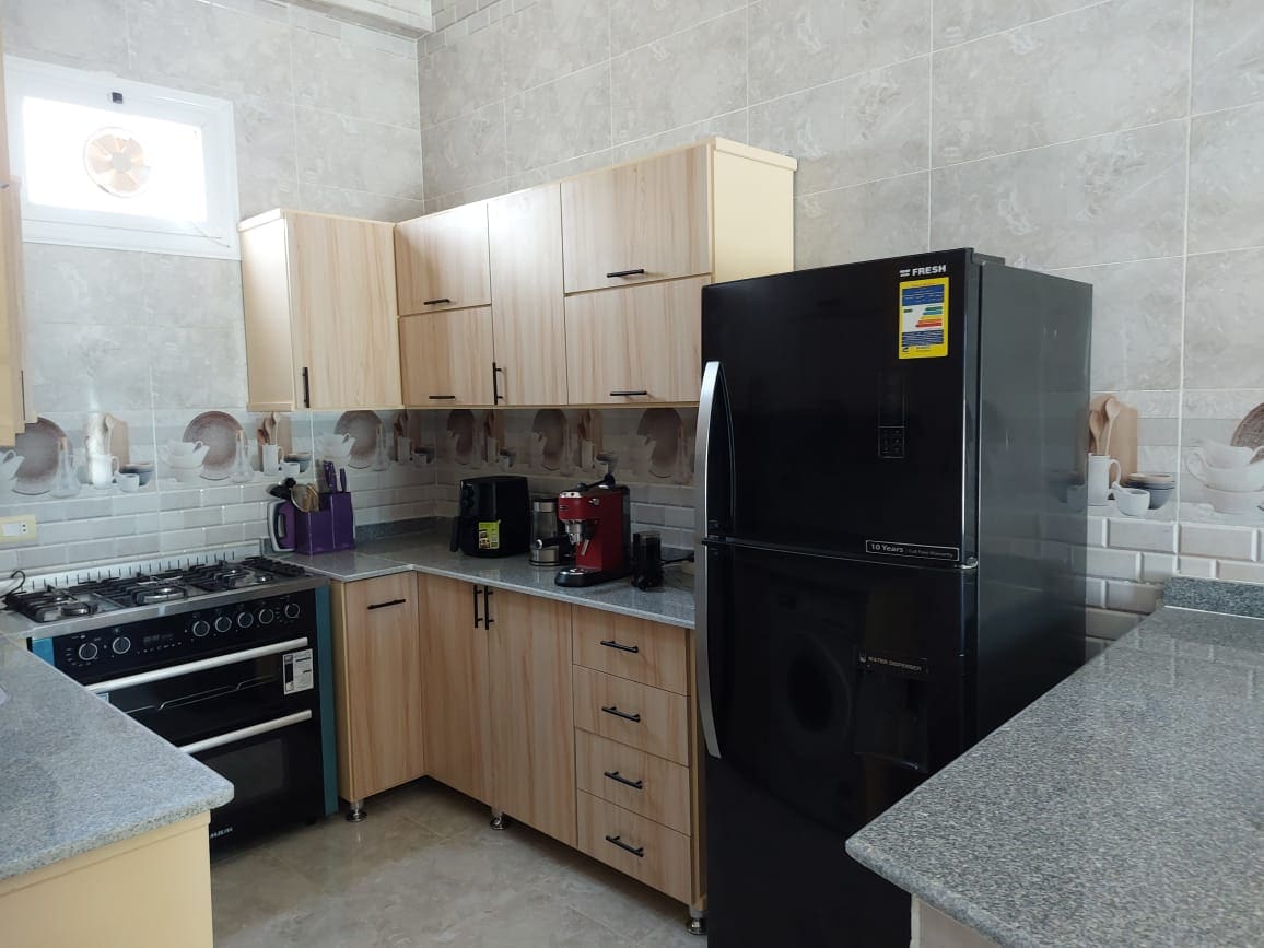 Un APARTAMENTO ENTERO con un jardín trasero situado en una zona hermosa y verde en una comunidad pacíficamente integrada que satisface todas las necesidades de los residentes. Las habitaciones están recién amuebladas, con aire acondicionado, TV inteligente y todas las comodidades que puedas necesitar, superLIMPIO y TRANQUILO. El apartamento está a 25 minutos del Aeropuerto Internacional de El Cairo. Cafeterías, restaurantes, supermercados y farmacias están cerca. Calidad de hotel con comodidad hogareña ofrecida a un PRECIO RAZONABLE.