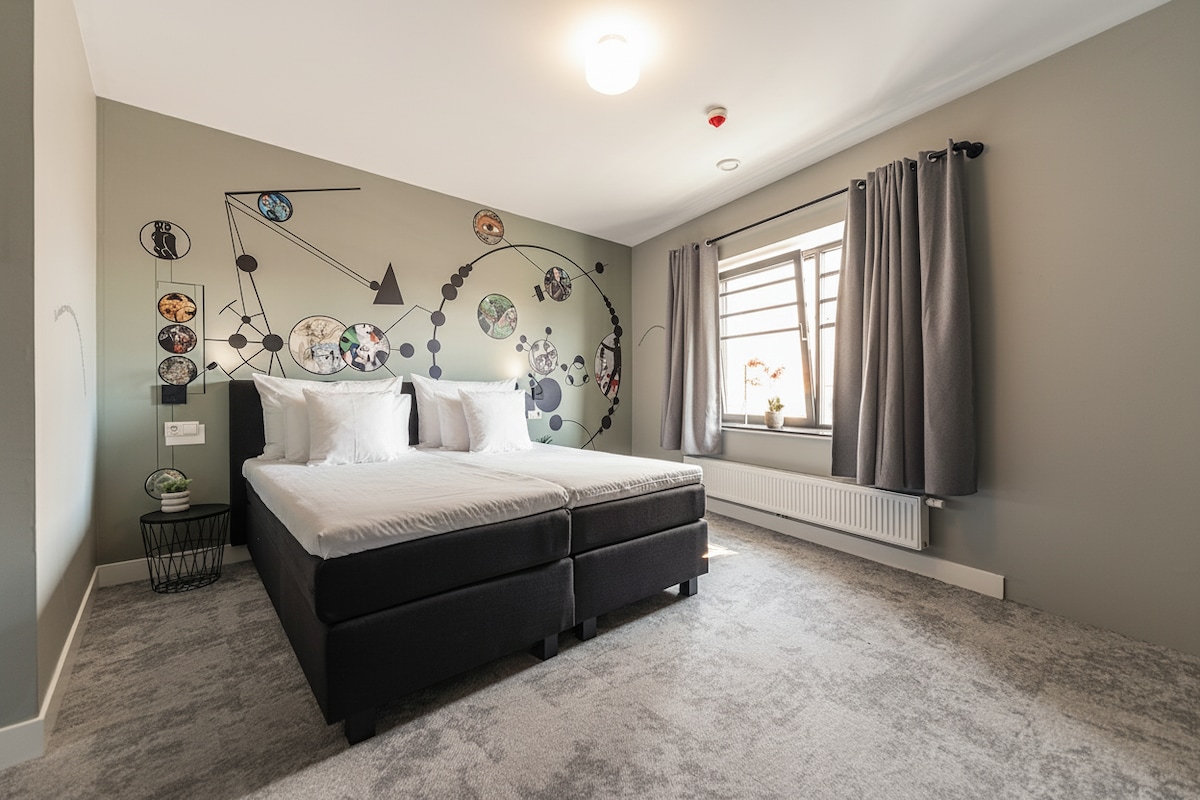 Spacious, artist-inspired suite for 2 guests with a comfortable king-size bed. Enjoy a private kitchen with induction hob, dishwasher, fridge, Nespresso, kettle, and cooking essentials. Air conditioning ensures a pleasant stay. Perfect for couples, solo travelers, or business trips, combining modern comfort with a creative, De Stijl-inspired atmosphere in the heart of the city.