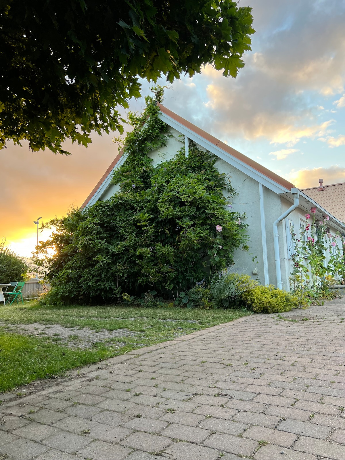 Casa de huéspedes de nueva construcción en el jardín de la familia anfitriona, con baño y ducha propios, situada lo suficientemente lejos como para no ser molestada por la autopista E6, pero lo suficientemente cerca como para poder aparcar a dos minutos de la misma. Lugar tranquilo y rural con pocos vecinos. No hay problemas con el aparcamiento y para los conductores de coches eléctricos hay opciones de carga a precio de coste. La carga se paga en el lugar. Se aceptan SEK, EUR y Swish.