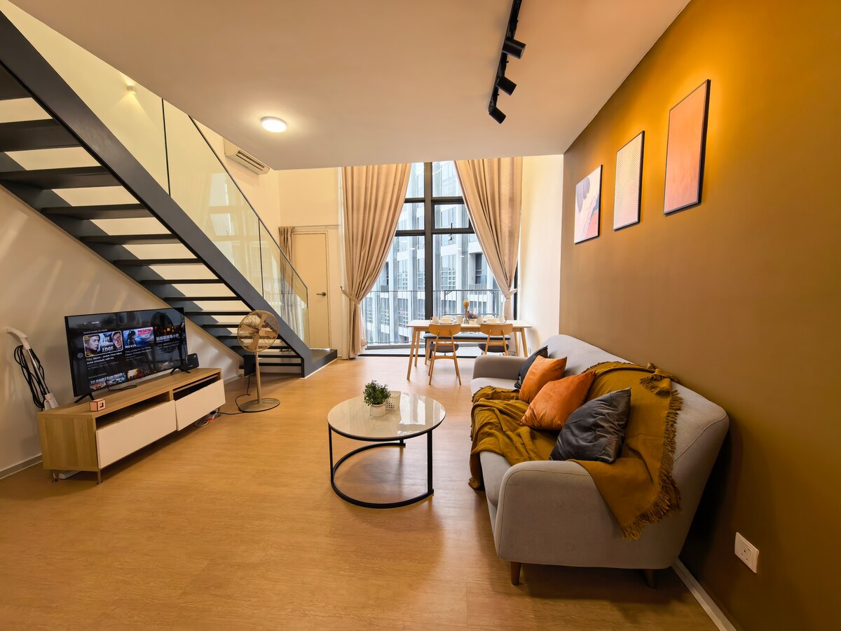 Entra en un dúplex privado de estilo japonés en Eko Cheras Residence, diseñado para la comodidad, la calma y la exclusividad. Con suelos de madera cálida, iluminación suave y líneas minimalistas limpias, este loft de planta alta ofrece un refugio tranquilo sobre la ciudad. El dúplex viene con una cama tamaño queen, una sala de estar de concepto abierto y un balcón privado, perfecto para el café de la mañana o para relajarse por la noche. Las grandes ventanas aportan luz natural mientras mantienen un ambiente tranquilo y privado.