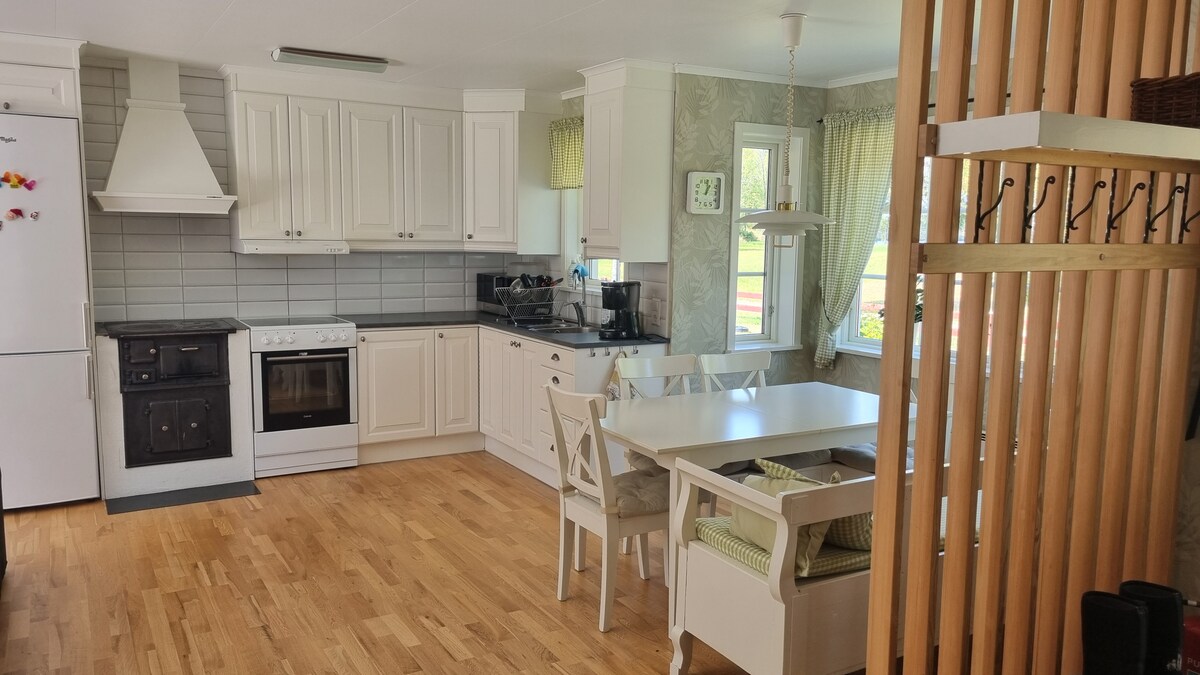 Disfruta de una antigua escuela recientemente renovada junto a un lago. Con cocina recién renovada con calefacción por suelo radiante y fantásticas vistas desde el comedor. La casa tiene cuatro chimeneas para crear un ambiente aún más acogedor. Baño recién renovado con calefacción por suelo radiante. Cuatro dormitorios con un total de diez camas para familiares y amigos. Aislado en la naturaleza para una relajación total. A solo 7 minutos en coche del centro de Eksjö, donde podrá ir de compras y disfrutar de sus restaurantes.