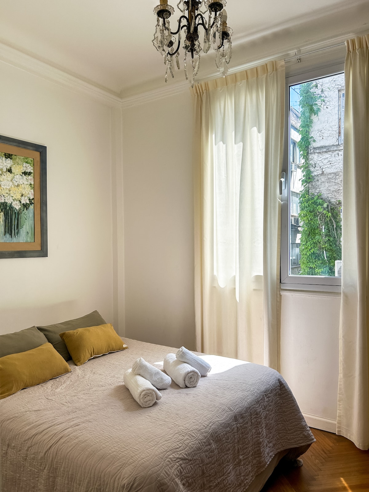 Es un departamento elegante, amplio (60 m2) y luminoso en un antiguo edificio de Recoleta, con una excelente ubicación para vivir una experiencia porteña con espacios verdes, rodeado de museos y restaurantes. Está muy bien decorado, lo que lo ha llevado a ser publicado en revistas de decoración relevantes. Tiene un pequeño balcón que mira a una plaza pequeña (Plaza del Lector II). La Biblioteca Nacional esta a media cuadra en diagonal.