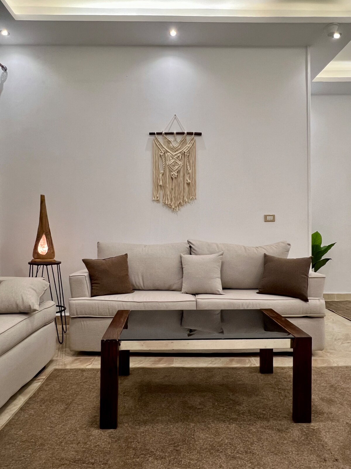 🌿 Te damos la bienvenida a tu escapada soleada y moderna en el nuevo Cairo, cerca de Concord Plaza y South Teseen Ya sea que estés de visita para un descanso corto, una estancia familiar o de negocios, este espacio ofrece la combinación perfecta de comodidad, estilo y conveniencia. Situado en una de las zonas seguras y bien comunicadas de El Cairo, disfrutarás de un luminoso alojamiento minimalista con una acogedora terraza, además de cafés, centros comerciales y las principales carreteras a pocos pasos. Es la base ideal para explorar la ciudad mientras disfrutas de un retiro tranquilo cerca del aeropuerto.