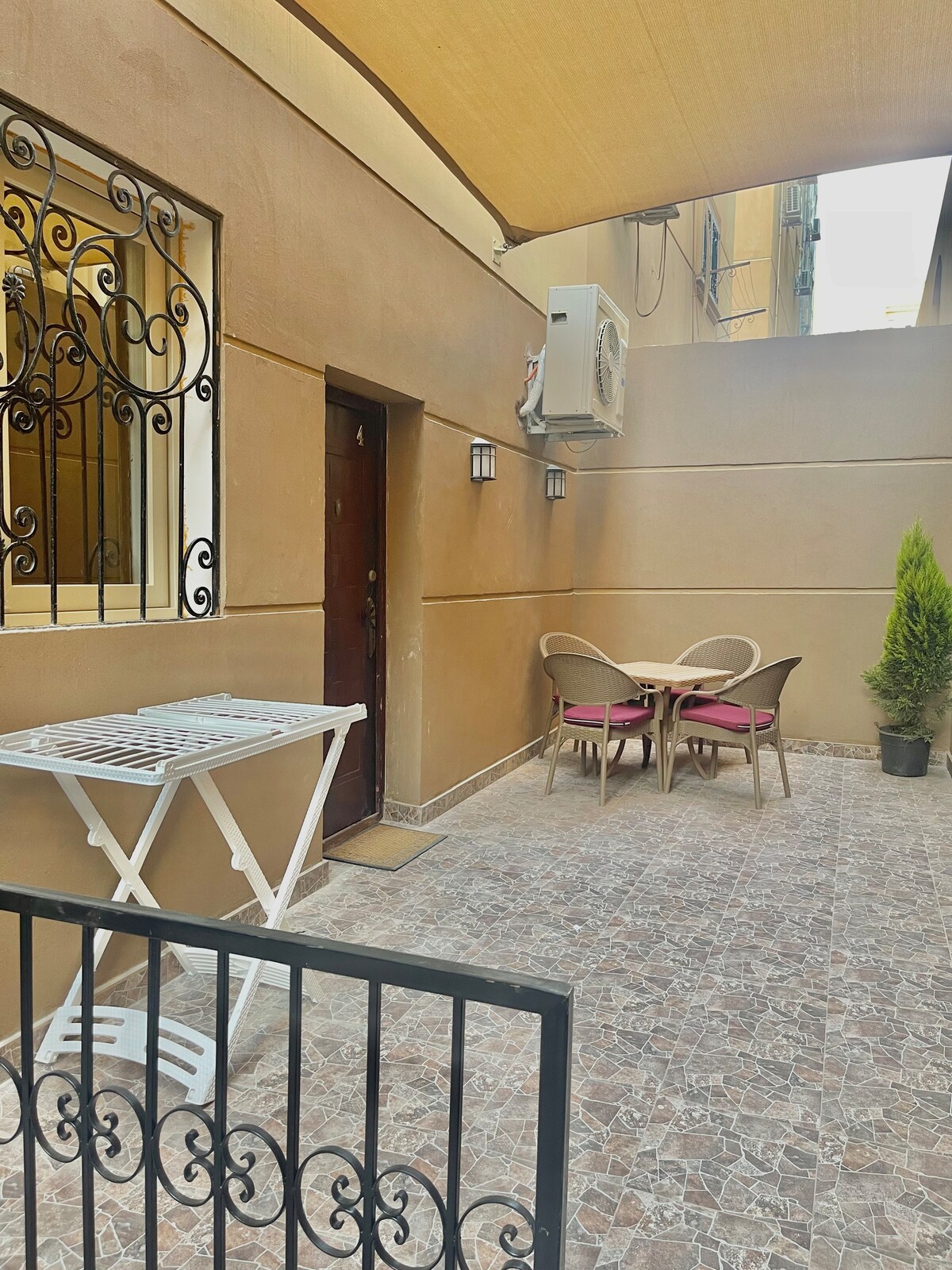 Disfruta de una experiencia elegante en este lugar céntrico. Ofrecemos asistencia gratuita para el equipaje 🧳. A 3 minutos en coche de Al Rehab y a 1 minuto a pie del complejo Garden 8. Restaurantes internacionales, supermercados, bares y farmacias están a 1 minuto a pie. La privacidad está garantizada con la llegada autónoma Estamos encantados de darte la bienvenida a nuestra unidad en el cuarto piso de nuestro encantador edificio. Si bien no hay ascensor, puedes estar seguro, nuestro representante dedicado estará disponible para ayudarte con tu equipaje.