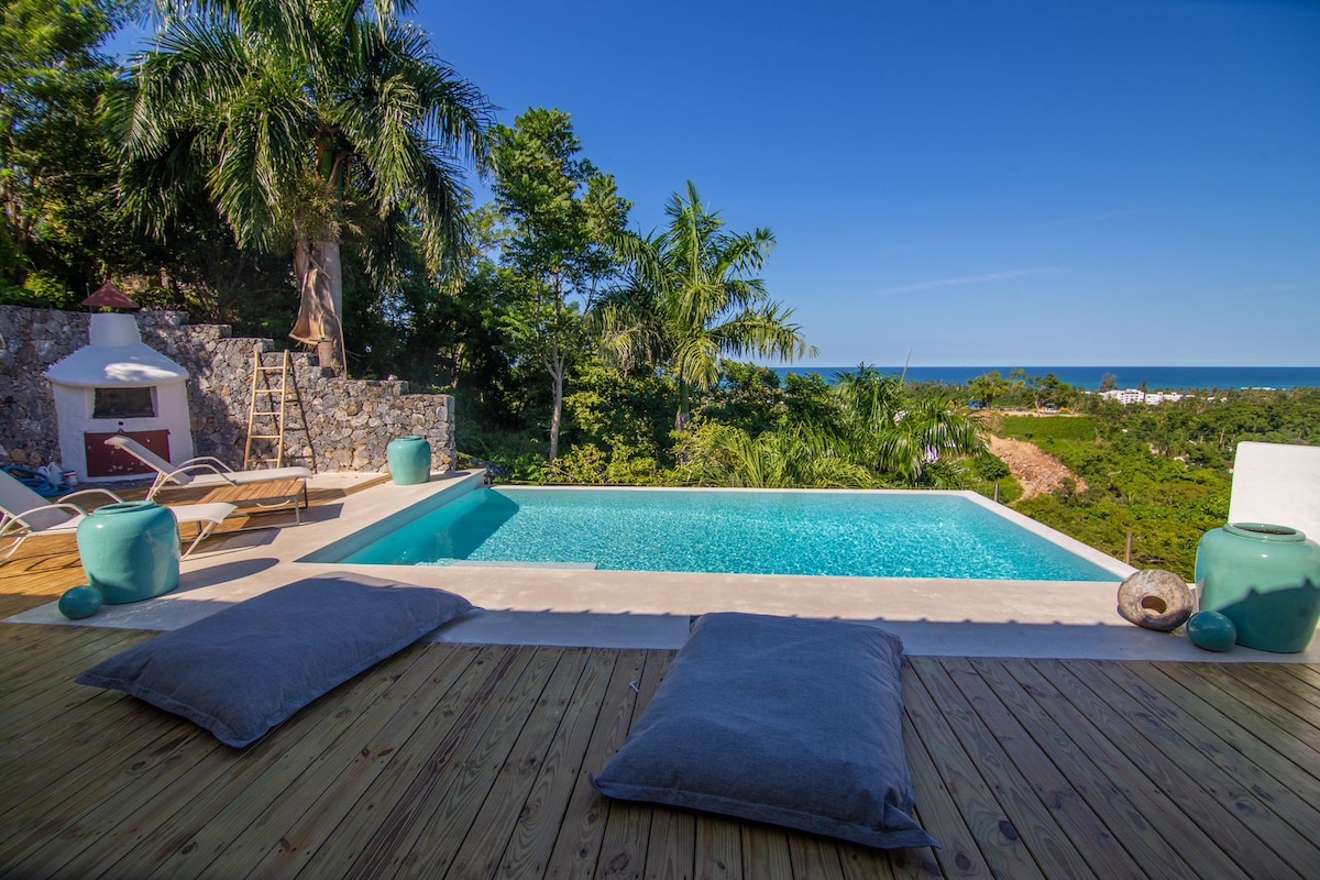 Escápese a BambooJam Villa, un retiro rústico-chic en La Bonita con impresionantes vistas al mar Caribe. Esta villa de 3 dormitorios acomoda cómodamente a 5 huéspedes y cuenta con piscina privada, jardín frondoso y cocina completamente equipada. Renovada para un lujo moderno, es un oasis sereno a solo 5 minutos en coche de las mejores playas y restaurantes de Las Terrenas. Perfecta para una escapada tropical tranquila.
