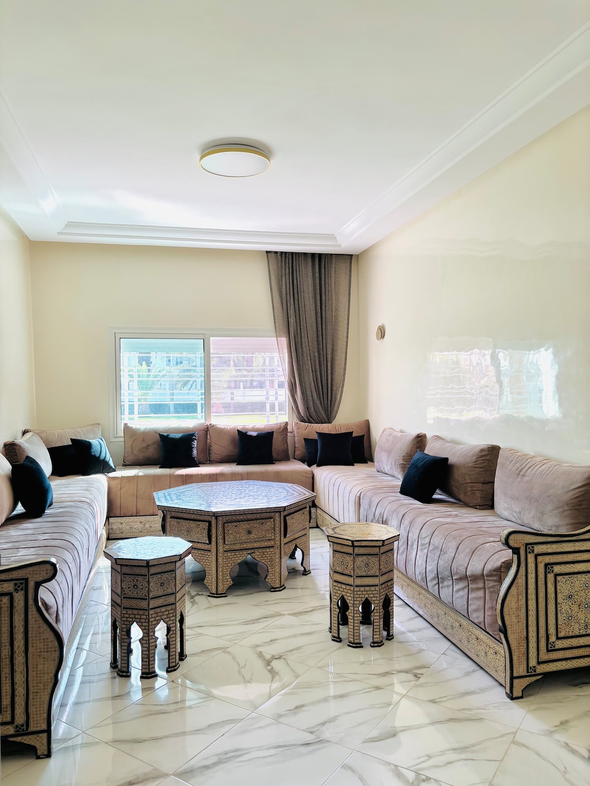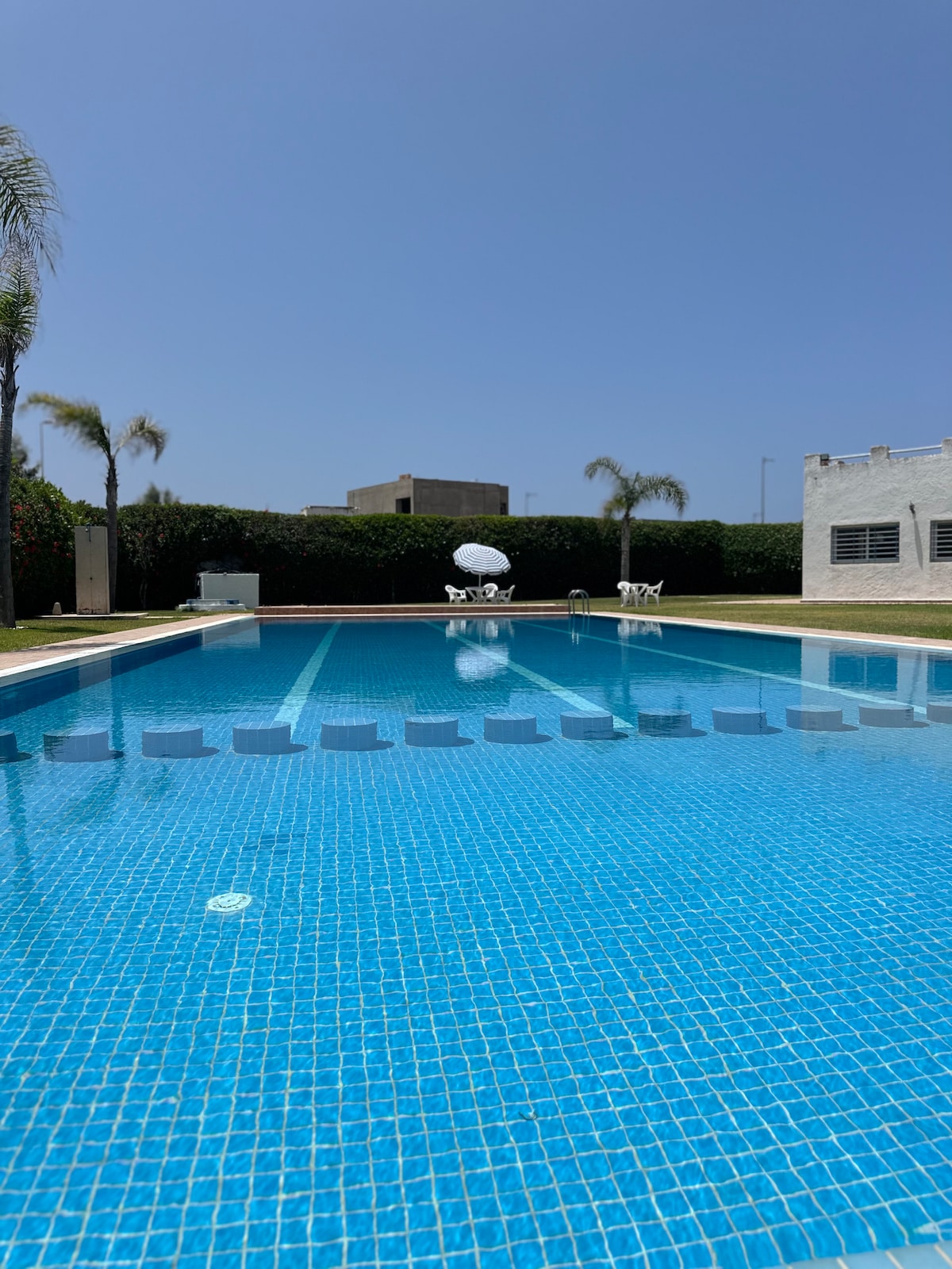 A dos pasos del mar, ¡villa perfecta para familias! Tres amplios dormitorios con baño privado, aire acondicionado, Wi-Fi rápido, y un dormitorio adicional con pequeña sala de estar para el personal. En la residencia: piscina, campos de fútbol, baloncesto, paddle, parque infantil y cafetería. Todo está preparado para una estadía inolvidable en Bouznika. ¡Hasta muy pronto! 🌞 ¡Piscina abierta en julio y agosto!