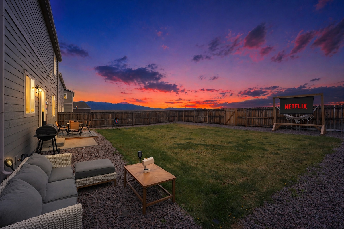 A los huéspedes les encantará este refugio de 4 dormitorios/3 baños de primer nivel, pero apto para familias y mascotas 🐾✨ Con una planta abierta, cocina lista para el chef🍳, mesa de billar🎱, espacio para hacer ejercicio, patio espacioso y jacuzzi privado🛁: hay algo para todos, incluidos los niños 🎯 Camina hasta el centro comercial Chapel Hills para ir de compras🛍️, cenar y AMC🎬. A minutos de la I-25, USAFA 🇺🇸, el Jardín de los dioses, el Broadmoor, la antigua ciudad de Colorado, además de las mejores rutas de senderismo y ciclismo 🌄🚴♂️
